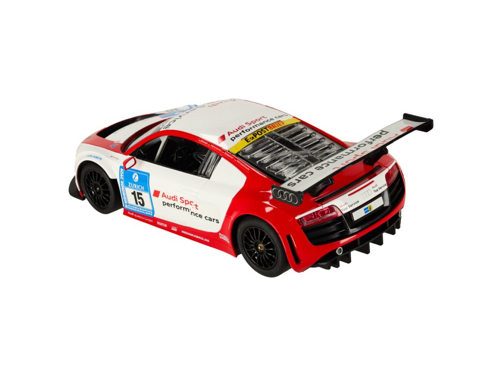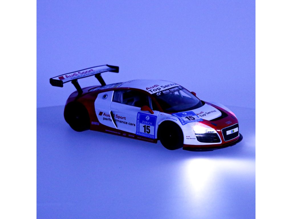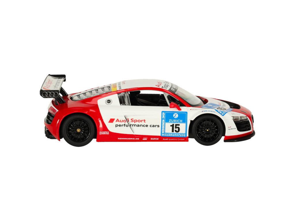 realistická reprodukcia - model Audi v mierke 1:14 verne reprodukuje detaily skutočného pretekárskeho vozidla GT vrátane loga Audi, aerodynamických línií a pretekárskych značiek