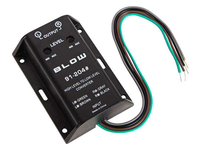 Audio signálový prevodník BLOW je praktické riešenie na prepojenie autorádia alebo iného audio zariadenia s RCA vstupom zosilňovača. Slúži na bezpečný a spoľahlivý prevod vysokonapäťového výstupu reproduktorov na nízkoúrovňový signál, ktorý je vhodný pre zosilňovač. Vďaka kvalitnému spracovaniu poskytuje čistý výstupný signál a je vhodný na každodenné použitie v aute aj v ďalších audio inštaláciách.