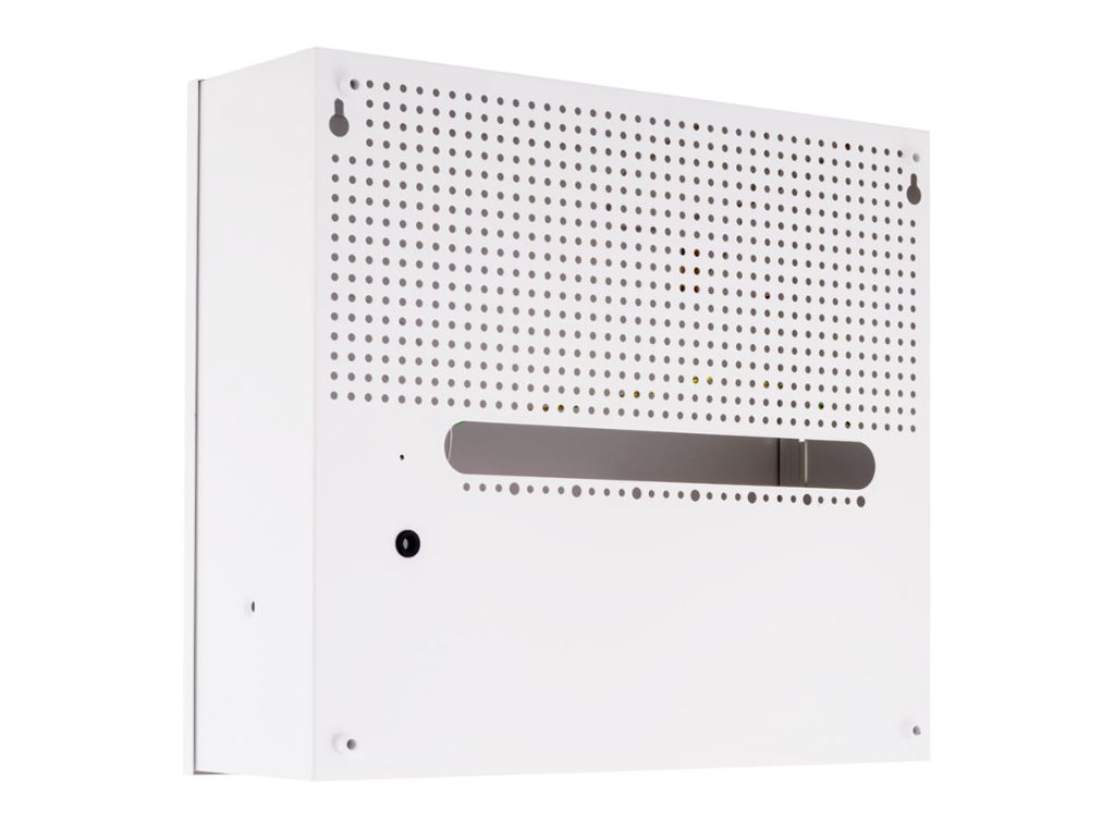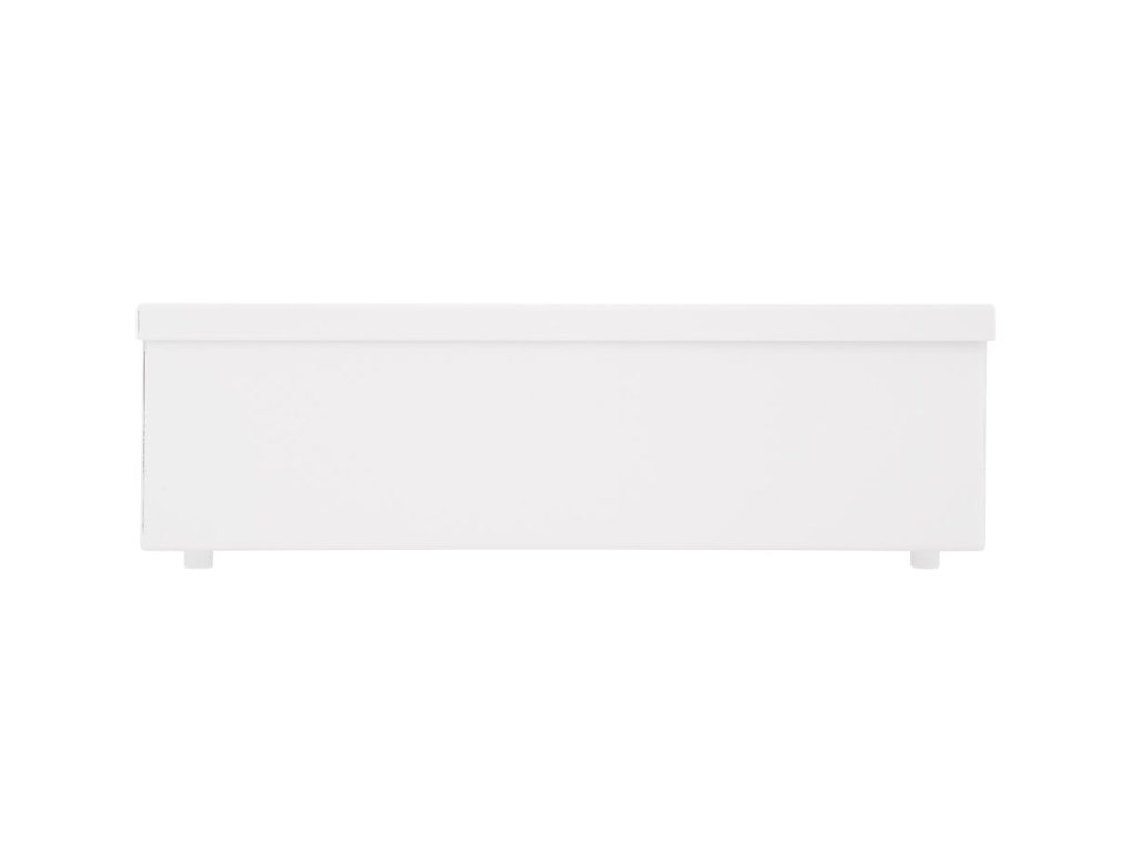 | Konstrukcia krytu | Kryt ABOX-H Materiál krytu - oceľový plech 0,8 mm Kryt práškovo lakovaný na bielu farbu Namontovaný tamper otvárania Systémové prítvory 4,8 mm v rastri 10,8 mm Odstup od steny 8 mm Montážne otvory 6 mm |