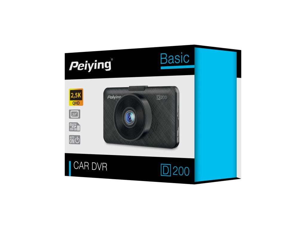 Autorekordér Peiying Basic D200 je vybavený 170° širokouhlým objektívom, zaručujúcim registráciu úplného obrazu diania pred kapotou auta. Mimoriadne užitočné, najmä pri určovaní chyby pri kolízii.