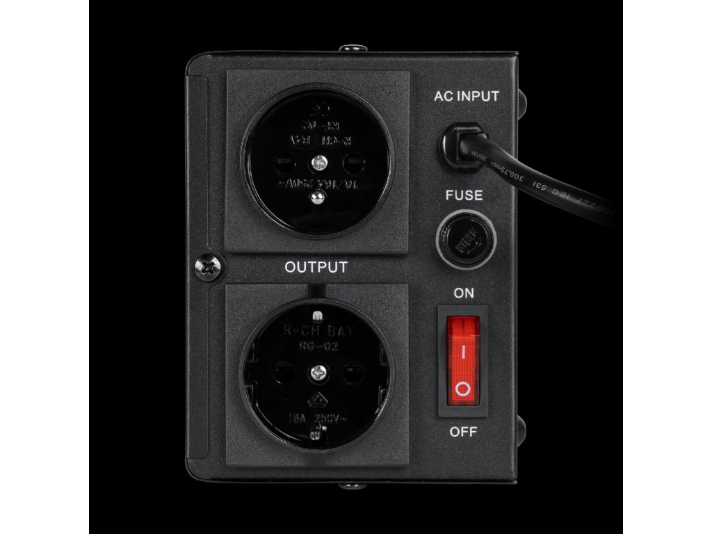 Vstup: Rozsah napätia 150 - 270 V AC Vstup: Frekvencia 50/60 Hz Výstup: Napätie 230 V Výstup: Frekvencia 50/60 Hz Výstup: Presnosť ±8% Výstupné napätie: Jedna fáza Transformátor EI Účinnosť: 98% Ochrany: proti príliš vysokému a nízkemu napätiu, preťaženiu, prehriatiu, skratu Oneskorenie: Žiadne oneskorenie / oneskorenie (180/6 sekúnd) Prevádzková teplota: 0~40°C Relatívna vlhkosť: 10%~90% Skladovacia teplota: -15~45°C ---------- Hmotnosť: 1,65 kg Rozmery: 117 x 197 x 90 mmVstup: Rozsah napätia 150 - 270 V AC