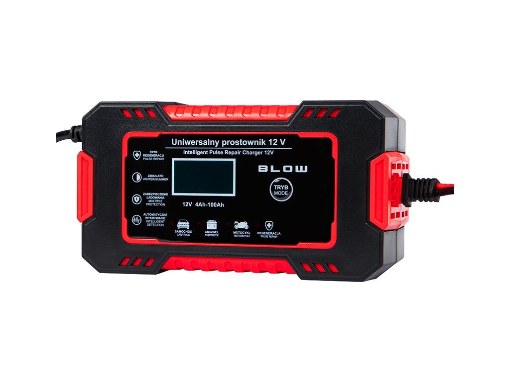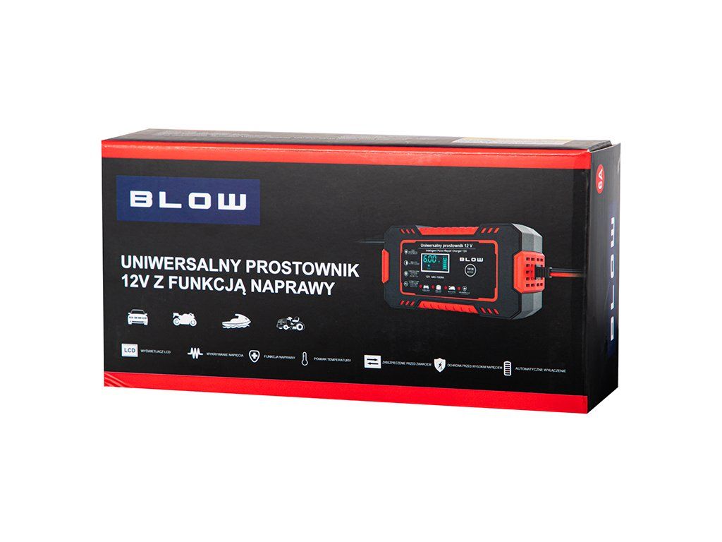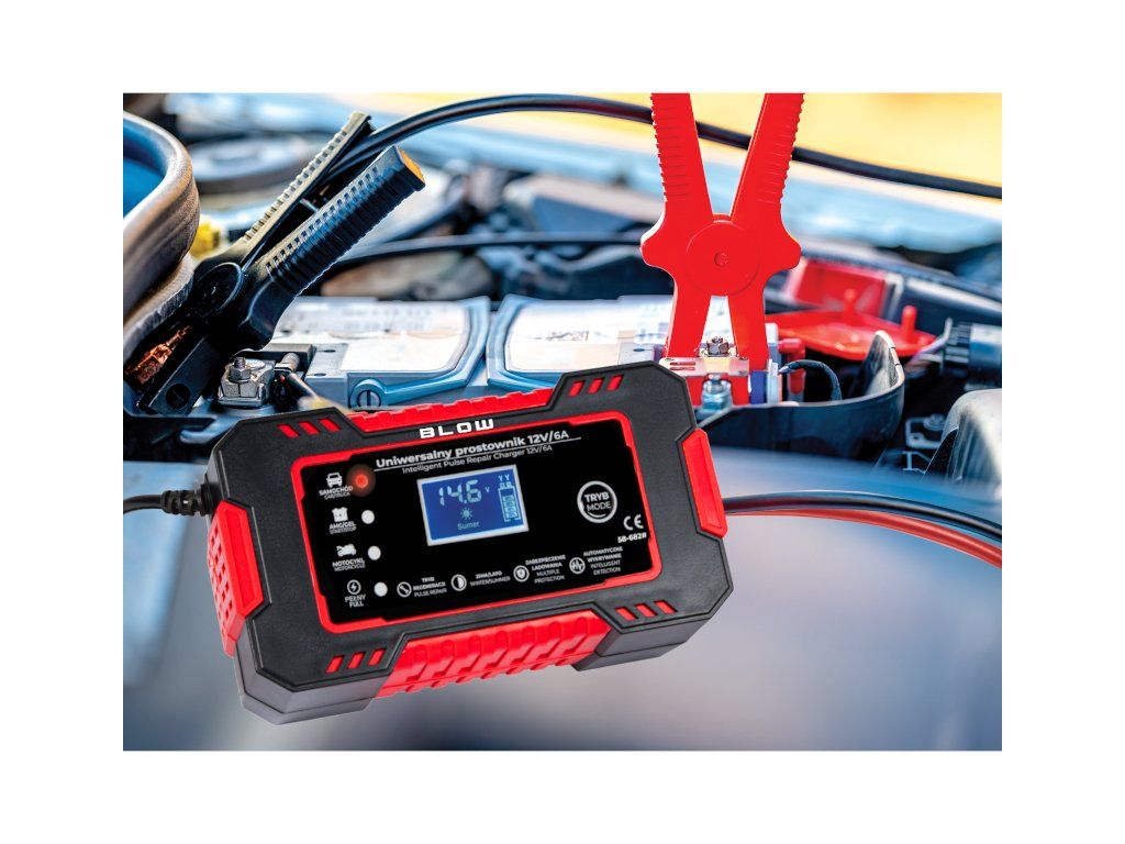 Autonabíjačka BLOW 12V/6A je moderná automatická nabíjačka s mikroprocesorovým riadením, určená na nabíjanie a údržbu 12 V olovených akumulátorov. Vďaka inteligentnému režimu nabíjania, prehľadnému LCD displeju a funkcii opravy batérie predstavuje praktické riešenie pre bežných vodičov aj náročnejších používateľov.