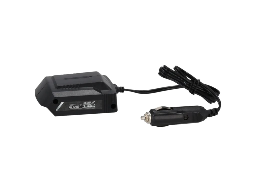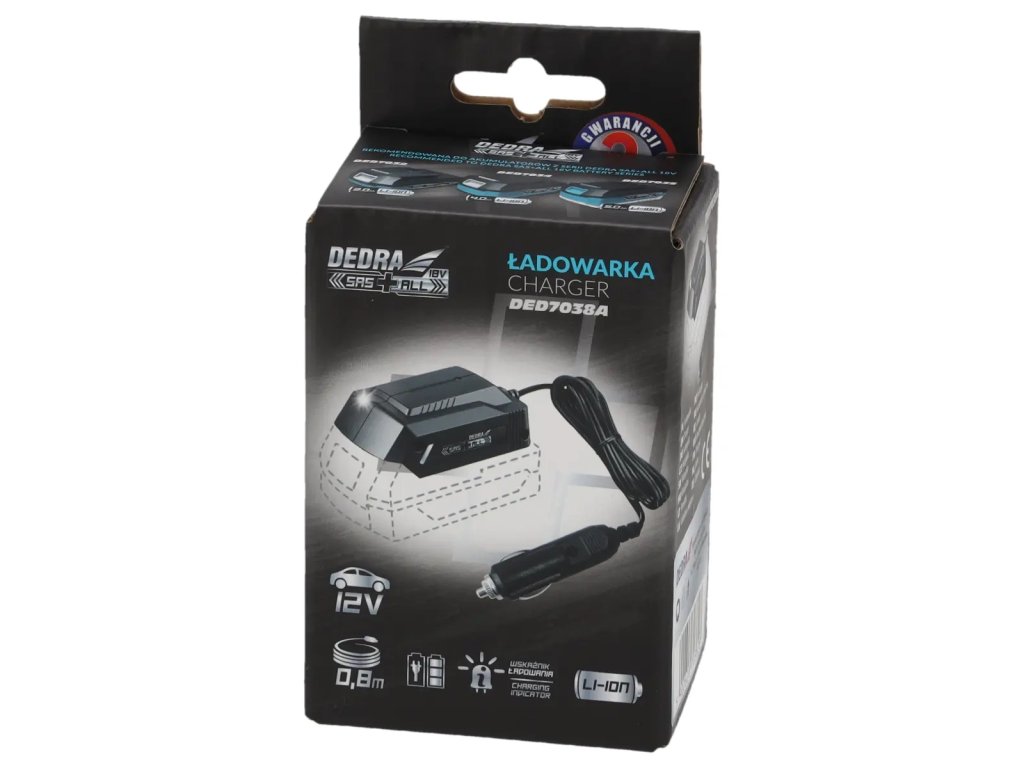 Tento výrobok je určený na nabíjanie batérií radu SAS+ALL (DED7032, DED7034, DED7035, DED6936, DED6937). Táto nabíjačka do auta dopĺňa už tak rozsiahly sortiment nabíjačiek v rade SAS+ALL (DED7038, DED7039, DED7038V, DED7039V). Autonabíjačka DED7038A nabije 2,0 Ah batériu za 70 minút, 4,0 Ah batériu za 140 minút a 5 Ah batériu za 160 mi nút. Nabíjačka DED7038A má možnosť nabíjania batérie prostredníctvom 12V zásuvky, čo je ideálne na cesty do práce a z práce, aby bol stroj pripravený na použitie hneď po príchode. Nabíjačka je vybavená LED diódou: tá indikuje, kedy je nabíjačka pripojená k napájaniu a kedy je proces nabíjania batérie ukončený.