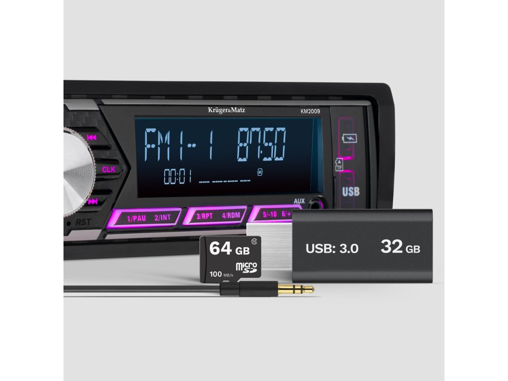 KM 2009 vám dáva na výber. Existuje mnoho zdrojov, z ktorých môžete v tomto zariadení prehrávať hudbu. Okrem rádia s pamäťou na 18 staníc máte k dispozícii USB port, cez ktorý môžete pripojiť pendrive s vaším obľúbeným playlistom. Okrem toho má zariadenie výstup AUX a slot na kartu microSD.