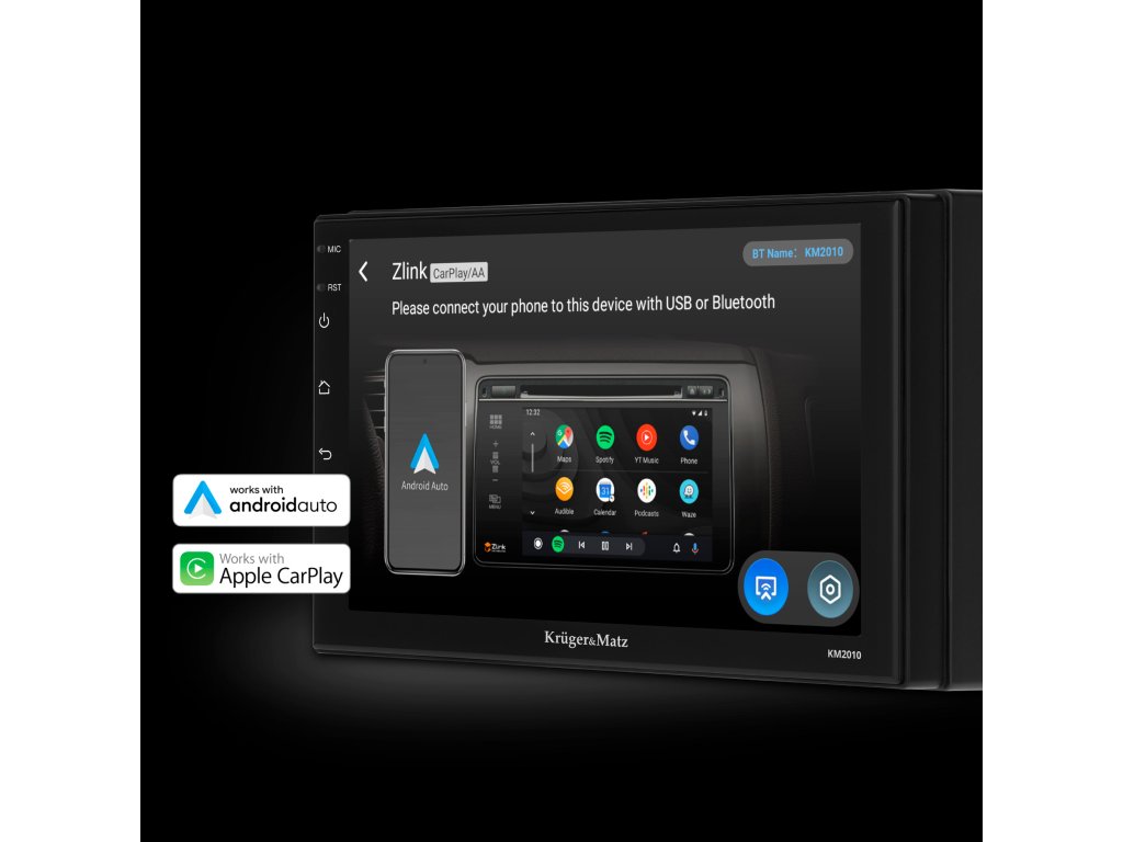 Rádio KM2010 má funkcie CarPlay a Android Auto, ktoré vám umožnia používať telefón v aute oveľa bezpečnejším spôsobom. Stačí aktívny Bluetooth a Wi-Fi a KM2010 vám umožní bezpečne spravovať funkcie ako hovory, správy a multimédiá na displeji rádia.