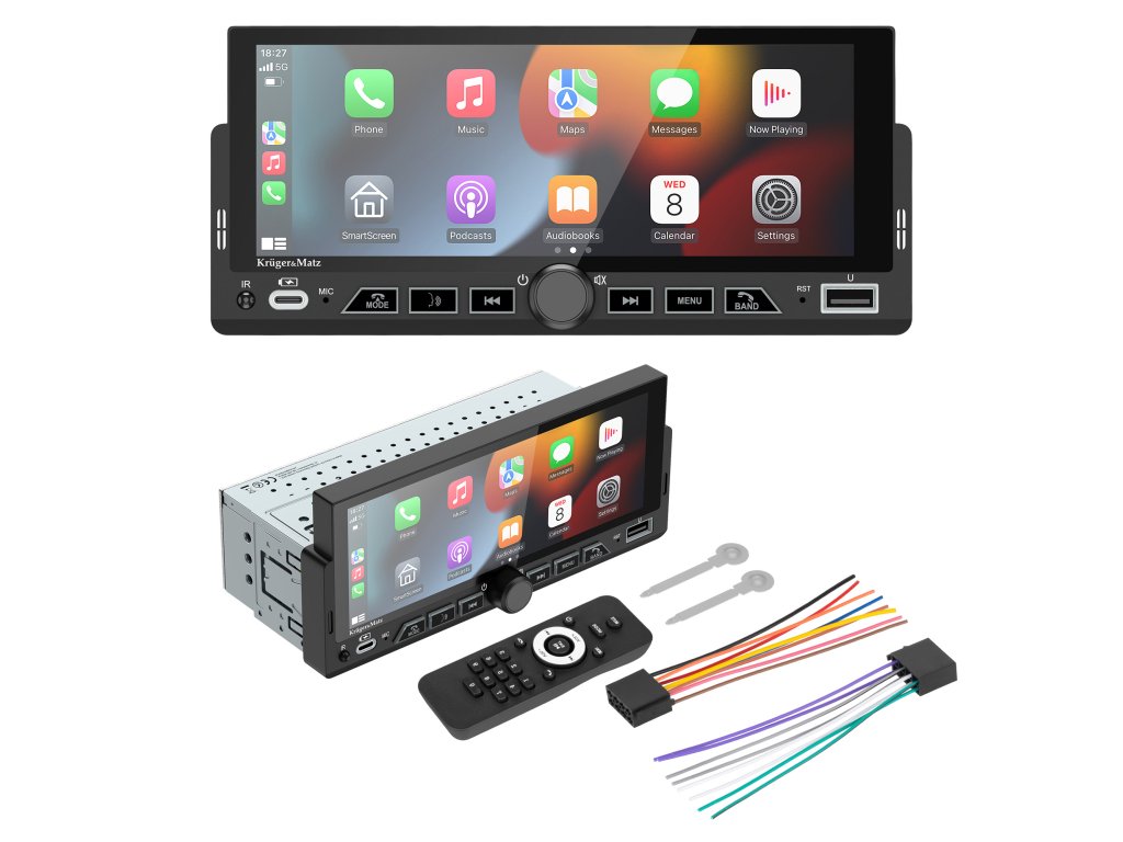 Kruger&Matz KM2017 je moderné rádio do auta 1 DIN s veľkým dotykovým displejom, ktoré kombinuje multimediálnu funkčnosť s pohodlím každodennej jazdy. Podpora Apple CarPlay, Android Auto, MirrorLink a Bluetooth 5.1 zabezpečuje, že máte plnú kontrolu nad hudbou, navigáciou a hovorom. To je ideálne zábavné centrum pre každé auto.