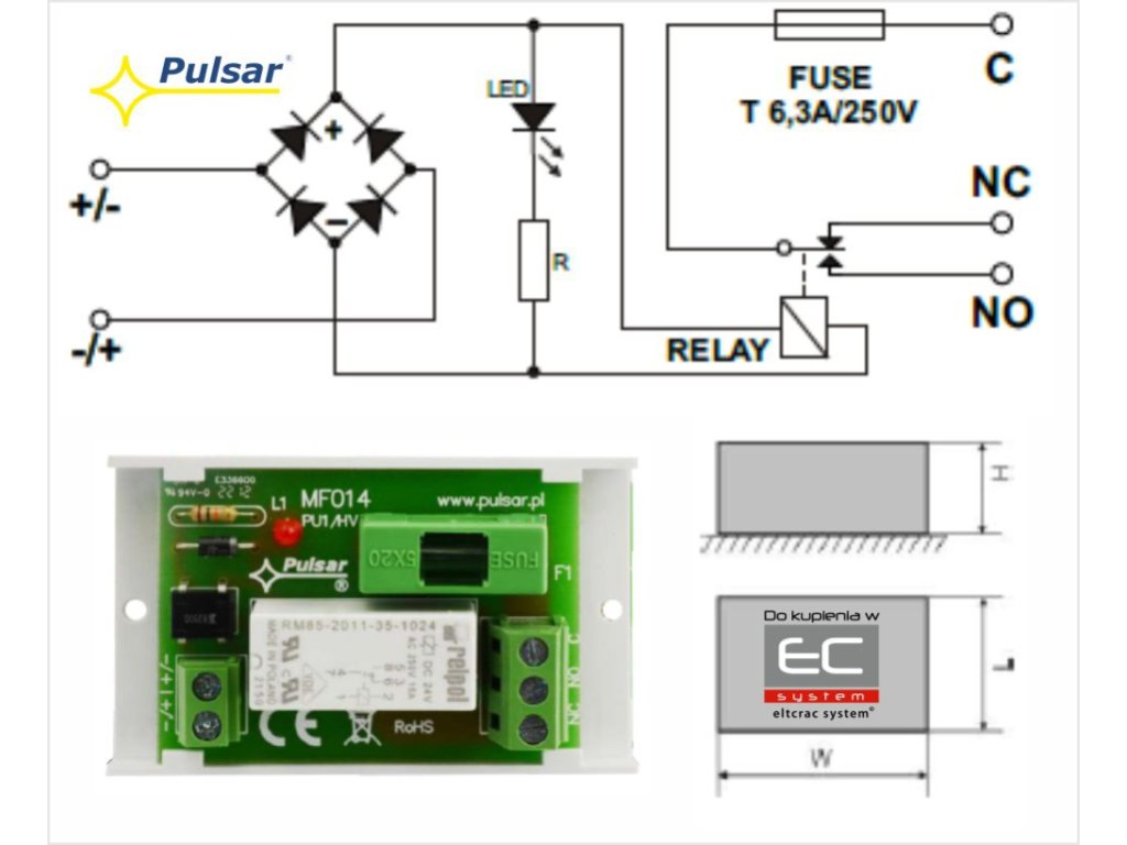 Reléový modul AWZ 517 PU1 HV 24V firmy PULSAR je určený na použitie v nízkonapäťových inštaláciách. Slúži na ovládanie, signalizáciu stavov napr. v poplachových systémoch, kontrole prístupu. Môže byť použitý na ovládanie zariadení s veľkým odberom prúdu cez výstupy OC poplachových systémov. Navyše poskytuje galvanické oddelenie signálov, napájacích zdrojov vo vzťahu k výstupom modulu.