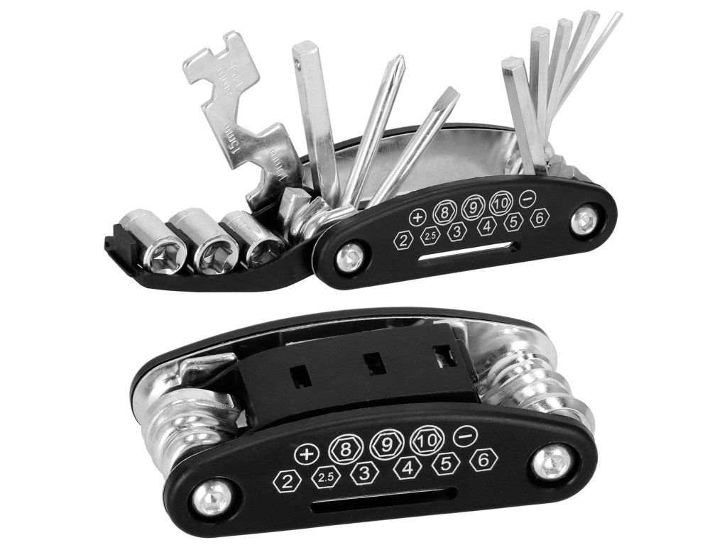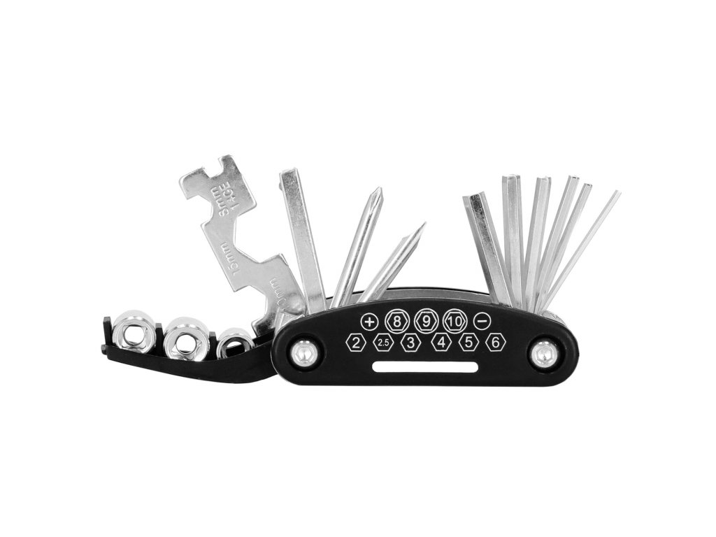 - 1x Viacrozmerný plochý kľúč s maticami: 8 / 10 / 15 mm