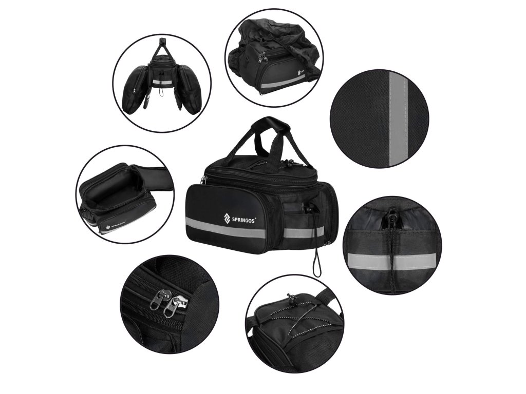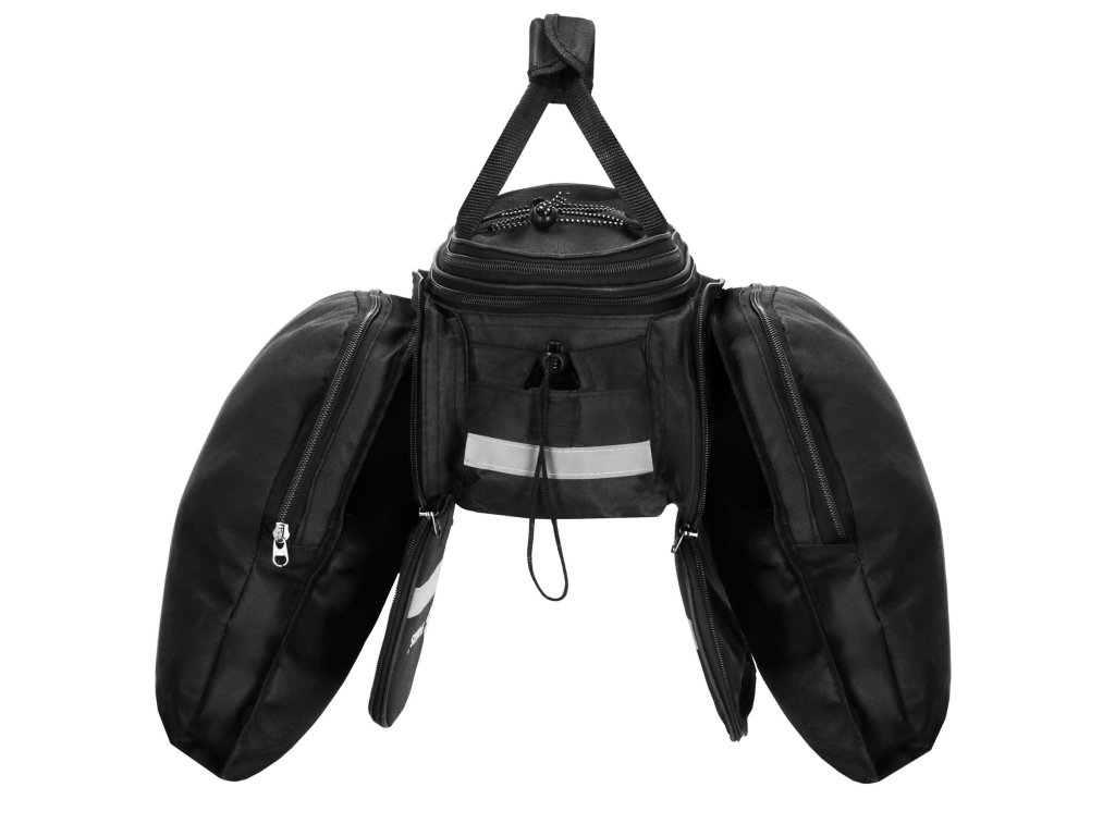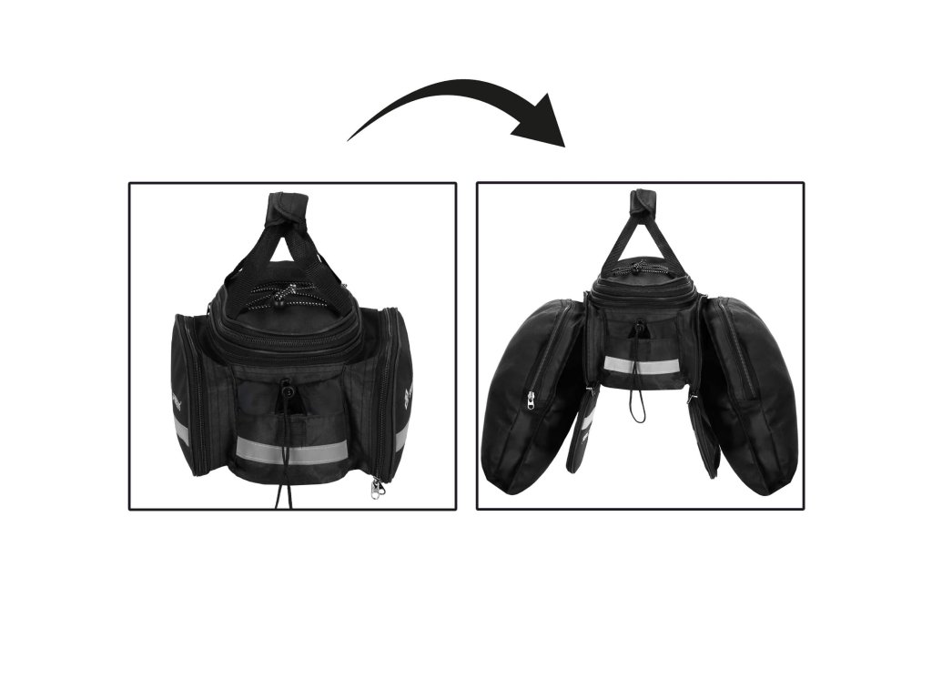 - 1 hlavná komora / 2 bočné vrecká / 2 brašne / 1 vrecko na suchý zips /