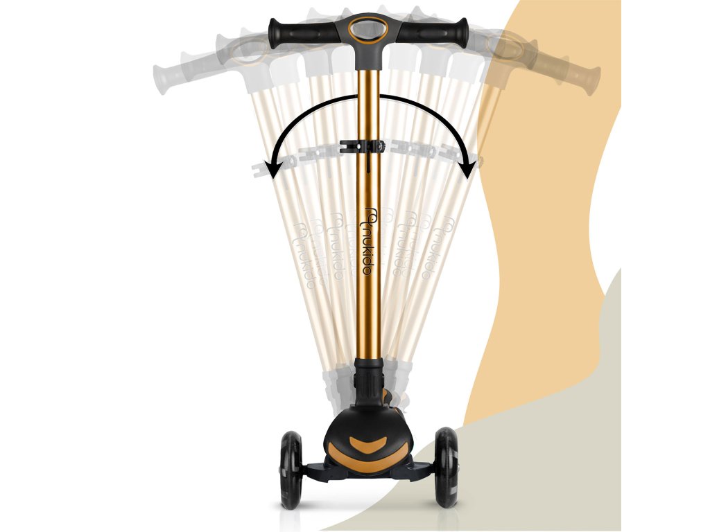 Riadidla sa ovládajú výlučne pomocou balancovania telom, bez otáčania riadidiel. Stačí sa mierne nakloniť na požadovanú stranu a hotovo! Dieťa rýchlo ovláda túto techniku jazdy, a pritom trénuje svoj zmysel pre rovnováhu. Kolobežka, pri otáčaní, stabilne udržiava vertikálnu polohu, vďaka trom kolieskam.