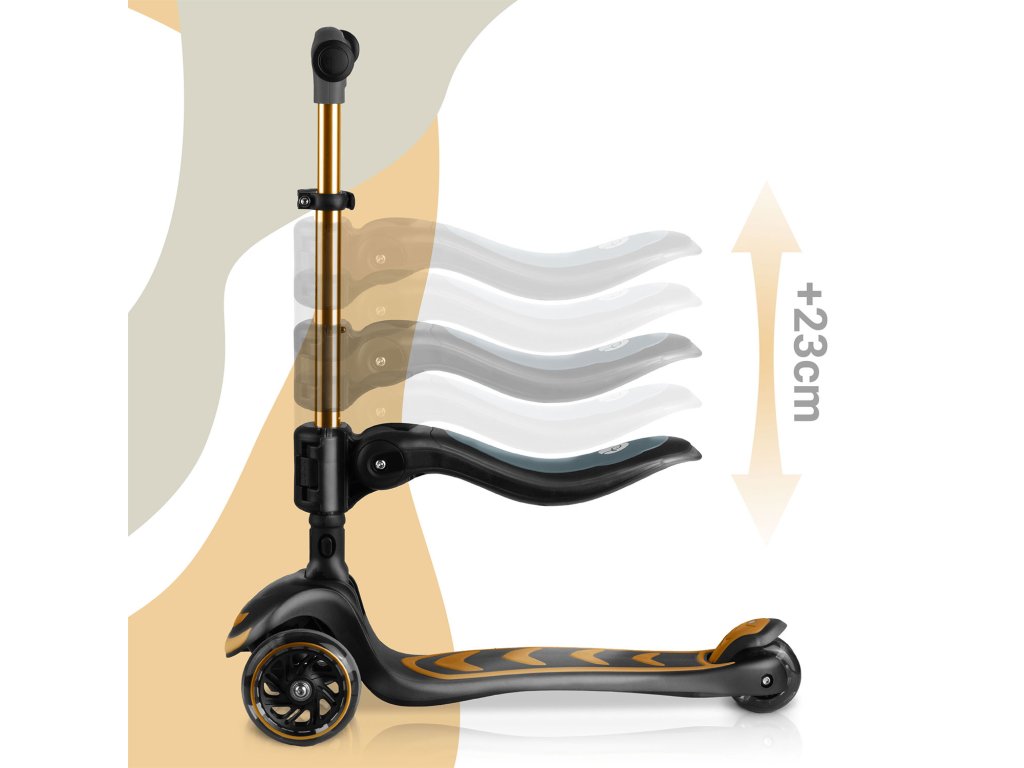 Balansová trojkolobežka pre deti sedenie Nukido Flippo - zlatá