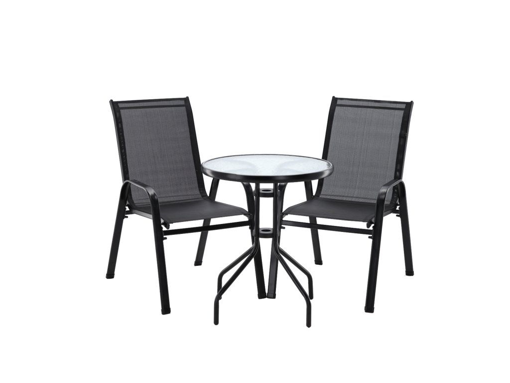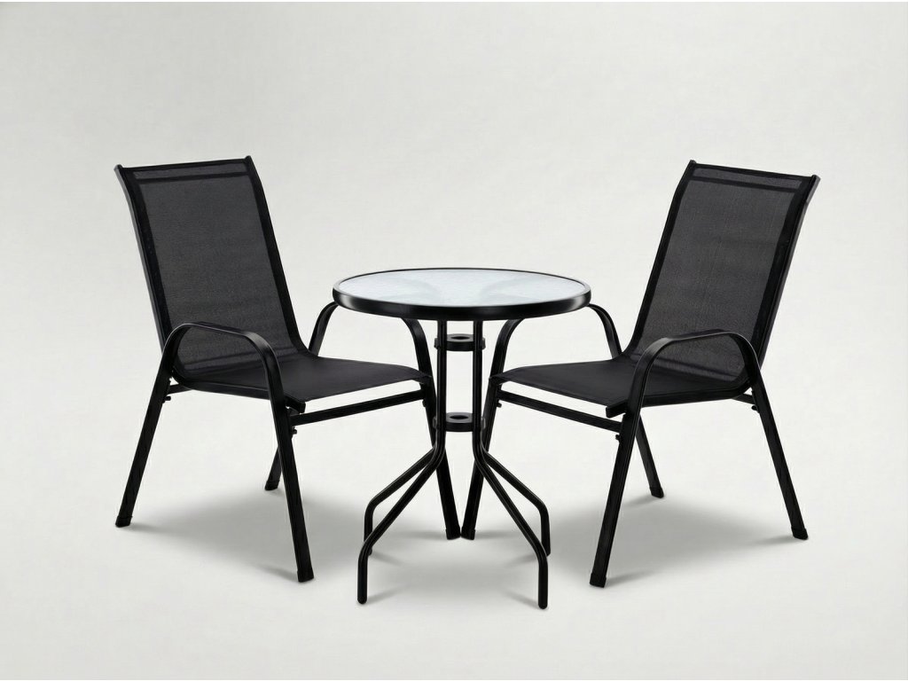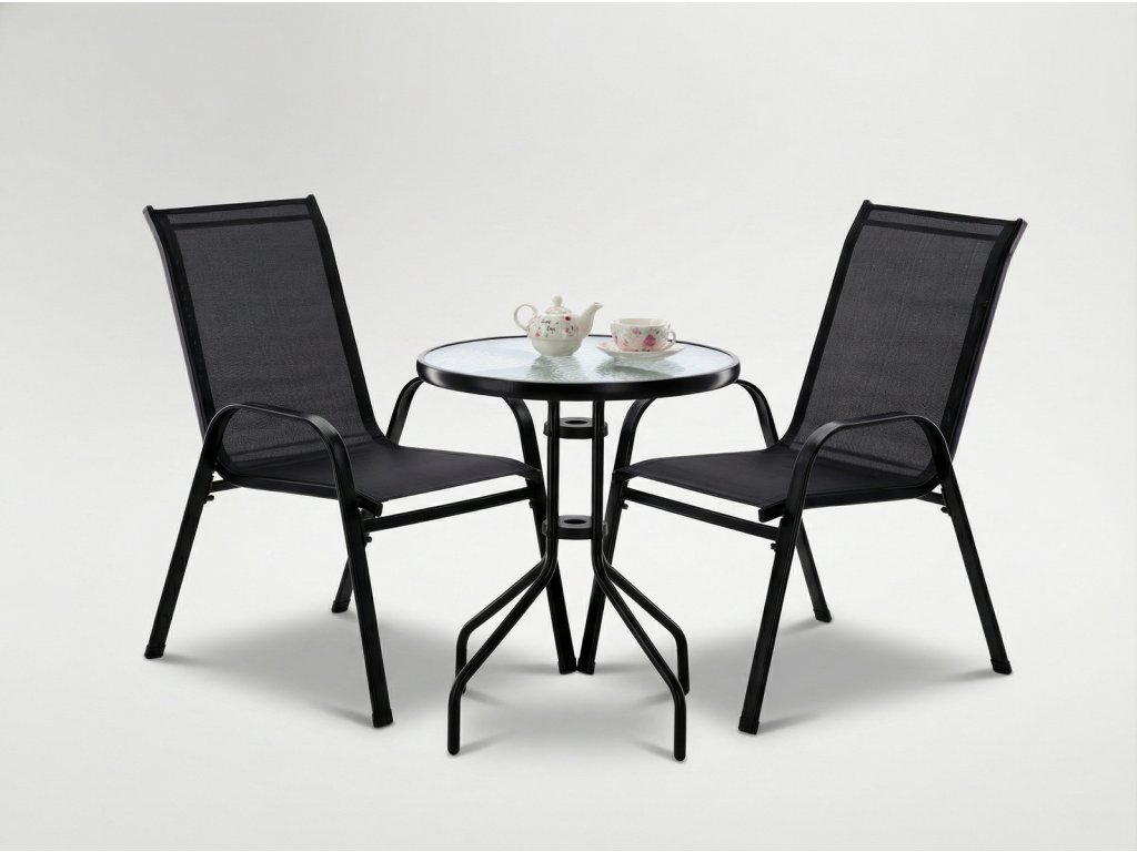BALKÓNOVÝ NÁBYTOK SET - 2 STOLIČKY + STOL - ČIERNY *5895