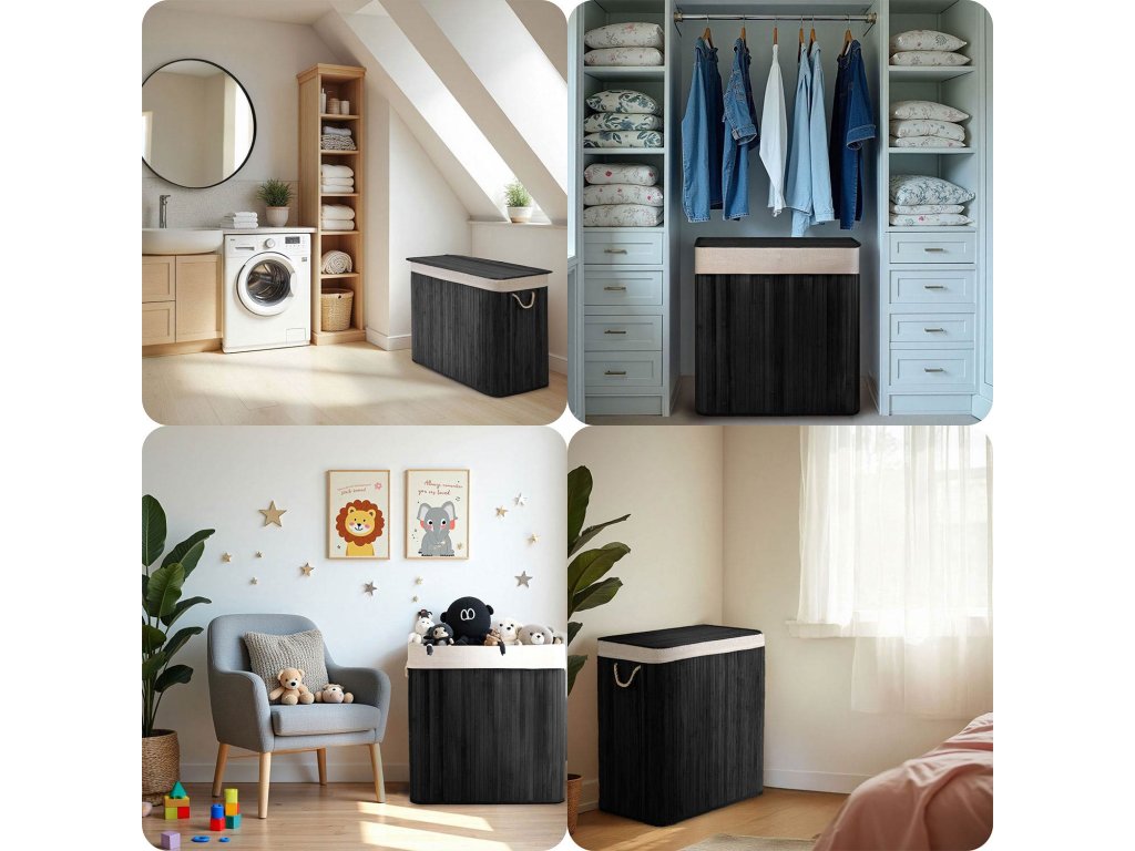 - Bambusový kôš: vysokokvalitný, prírodný bambus poskytuje výnimočnú tuhosť, odolnosť voči vlhkosti a antibakteriálne vlastnosti, zatiaľ čo zapadá do štýlového, ekologického interiéru.