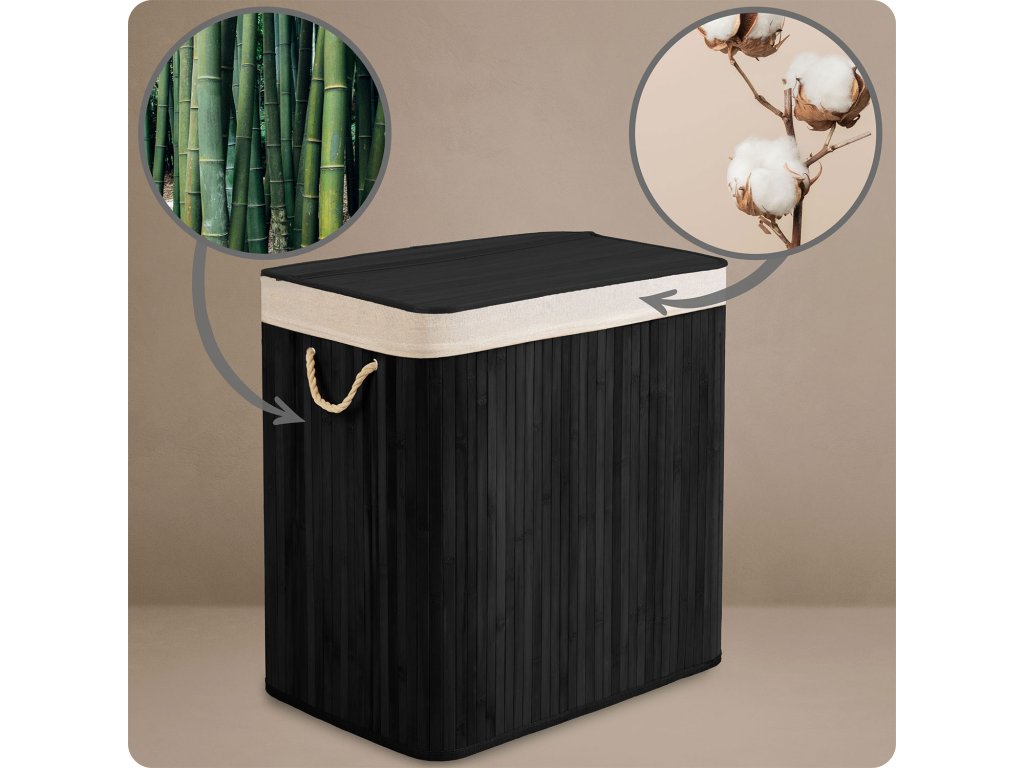 Prírodné vlákna bavlny a bambusu aktívne absorbujú vlhkosť a neutralizujú nepríjemné zápachy, bez toho aby ich zadržali vnútri koša.