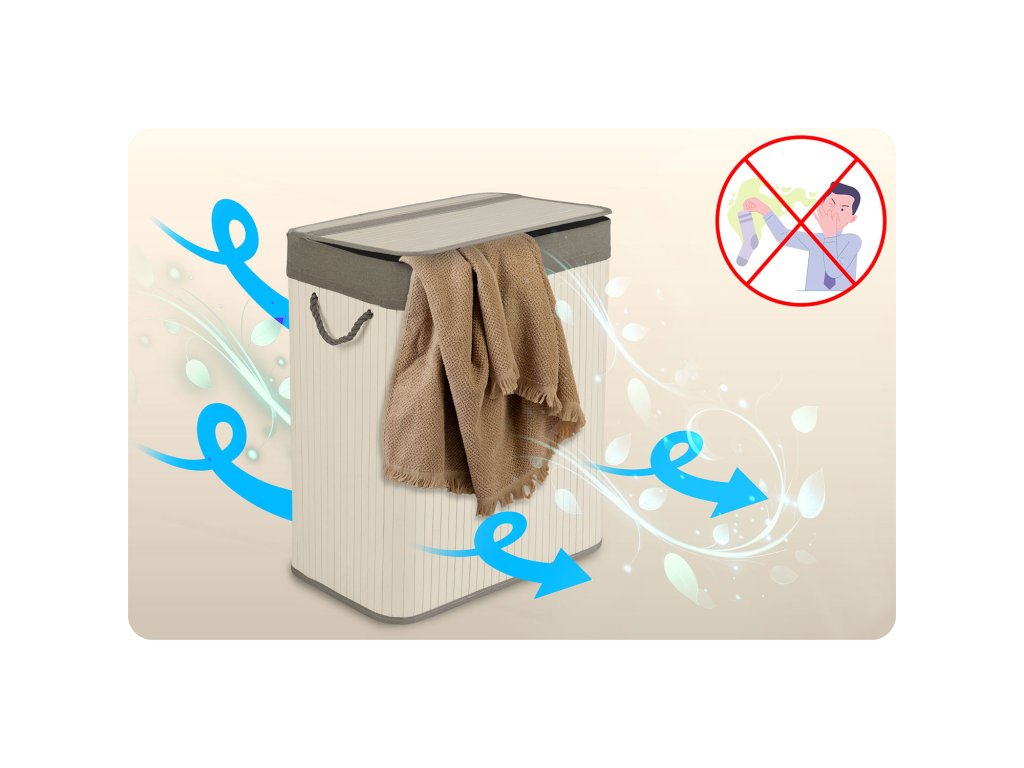 Prírodné vlákna bavlny a bambusu aktívne absorbujú vlhkosť a neutralizujú nepríjemné pachy, bez toho aby ich zadržali vo vnútri koša.