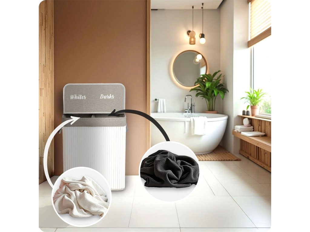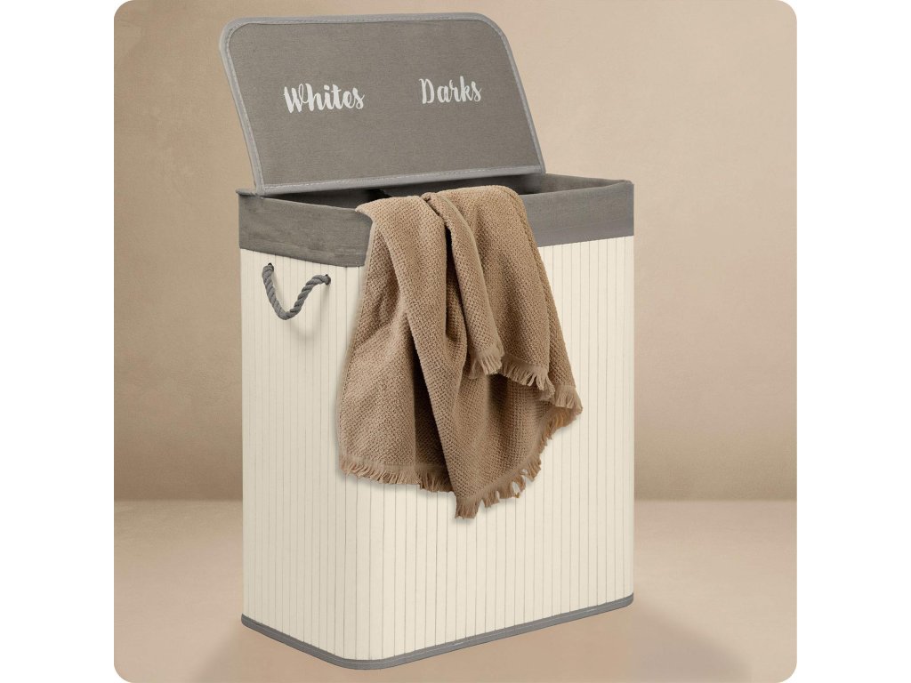 Rozlúčte sa s neporiadkom a špinavým prádlom na podlahe — zavediť poriadok a separáciu s objemným a odolným bambusovým košom.