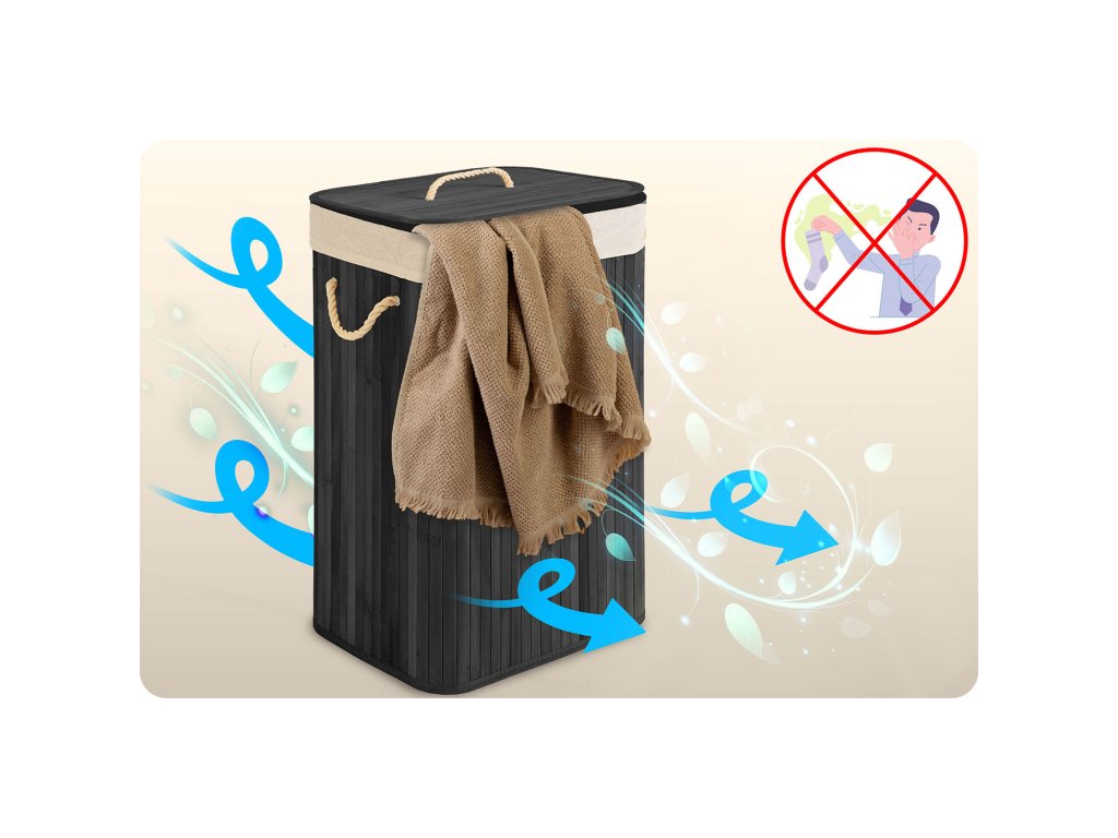 Prírodné vlákna bavlny a bambusu aktívne absorbujú vlhkosť a neutralizujú nepríjemné pachy, bez toho, aby ich zadržiavali vo vnútri koša.