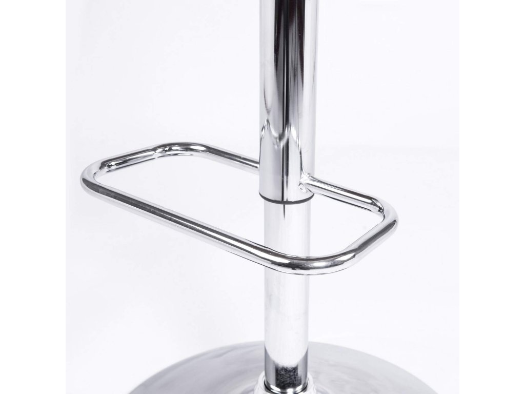 Barová stolička Torri ladí s leskom chrómového podstavca a dodáva okoliu nádych elegancie.