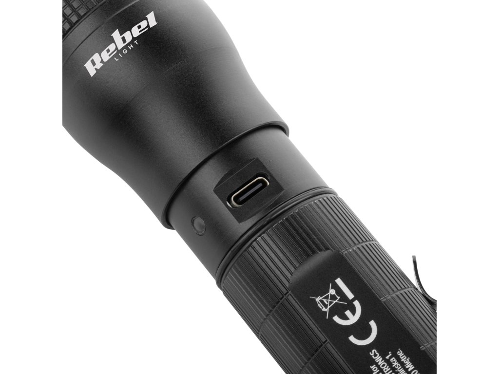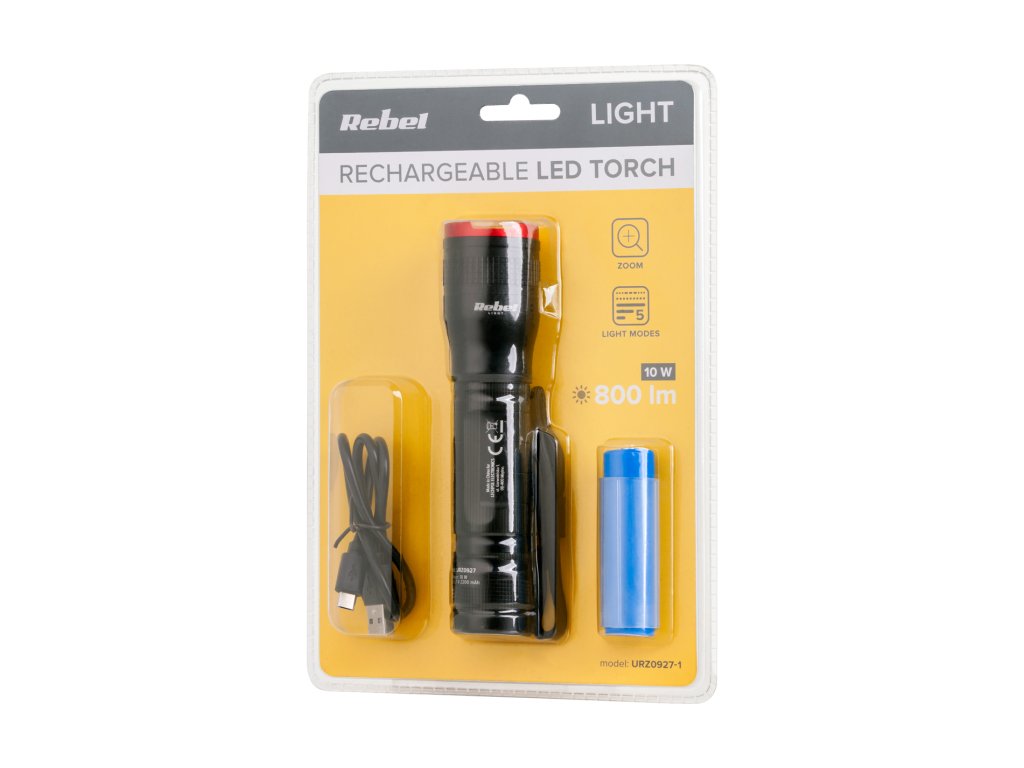 Akumulátorová multifunkčná baterka Rebel (zoom, nožík, kladivo na sklo).