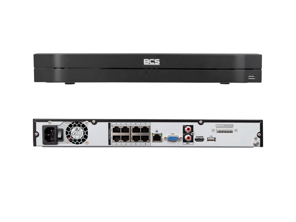 Model BCS-L-NVR0802-A-4KE-8P(2) je 8-kanálový IP rekordér. K rekordéru je dostupný bezplatný program Smart PSS umožňujúci presné riadenie celého systému. Veľkou výhodou rekordéra je možnosť cloudu P2P. Diaľkový náhľad umožňuje mobilná aplikácia gDMSS/iDMSS dostupná pre telefóny so systémom ANDROID a iOS. Záznam nahrávaného videa umožňuje pripojenie 2 pevných diskov SATA s kapacitou až 16 TB každý. Okrem toho bol rekordér vybavený 1 vstupom USB2.0, 1 vstupom USB 3.0, 1 x výstupom HDMI(4K), 1 x výstupom VGA.