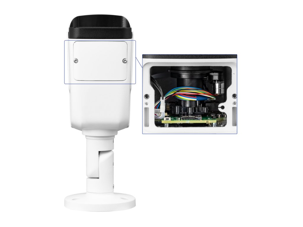 Zariadenie má tiež vstavaný IR reflektor s dosahom do 60m. Teleso kamery je vytvorené v štandarde IP67, čo zabezpečuje jej úplnú ochranu pred vnikaním prachu a vodou. Kamera je napájaná napätím 12V DC alebo cez PoE(802.3af).
