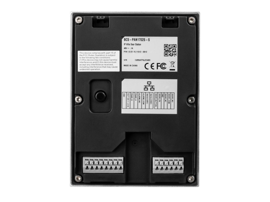 BCS-PAN1702S-S je dvojsystémová bránová stanica pre jednu rodinu od spoločnosti BCS. Určená je pre systémy IP alebo 2-drôtové (na výber). Obsahuje snímač 1/2.5" CMOS s rozlíšením 720p a objektív typu fisheye 1.9 mm. Je možné ju montovať pod omietku alebo na povrch pomocou dedikovanej skrinky (dostupná samostatne). Napájaná je 48V DC alebo PoE 802.3at.