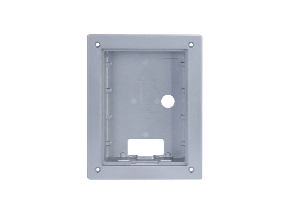 Skrinka vyrobená z hliníkovej zliatiny pre bránový panel IP BCS-PAN1701S-S. Skladá sa z dvoch prvkov: striebornej prednej skrinky spolu s prírubou a čiernej zadnej skrinky, navyše je určená pre podomietkovú montáž.
