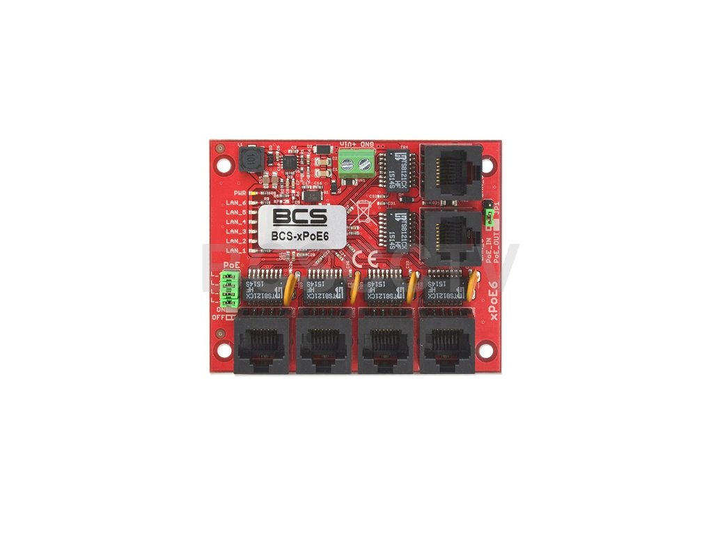 - Obsahuje nespravovaný switch PoE BCS-XPoE6 pracujúci v sieťach LAN 10/100 Base-T,