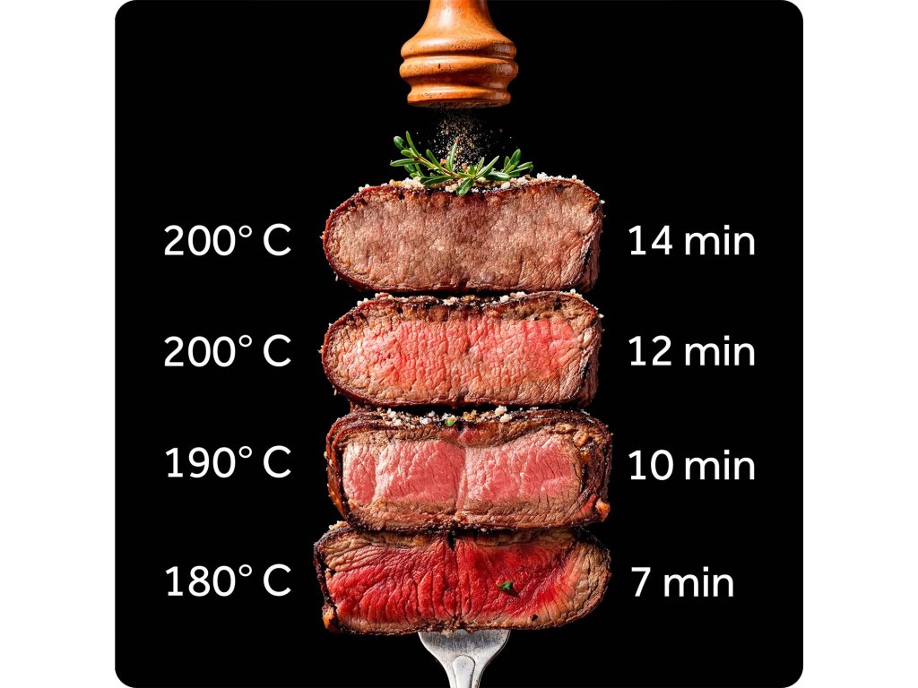 Vďaka pokročilej technológii cirkulácie horúceho vzduchu fritéza zabezpečuje ideálne výsledky vyprážanie: zlatistú, mierne chrumkavú kôrku zvonka a šťavnato vo vnútri.