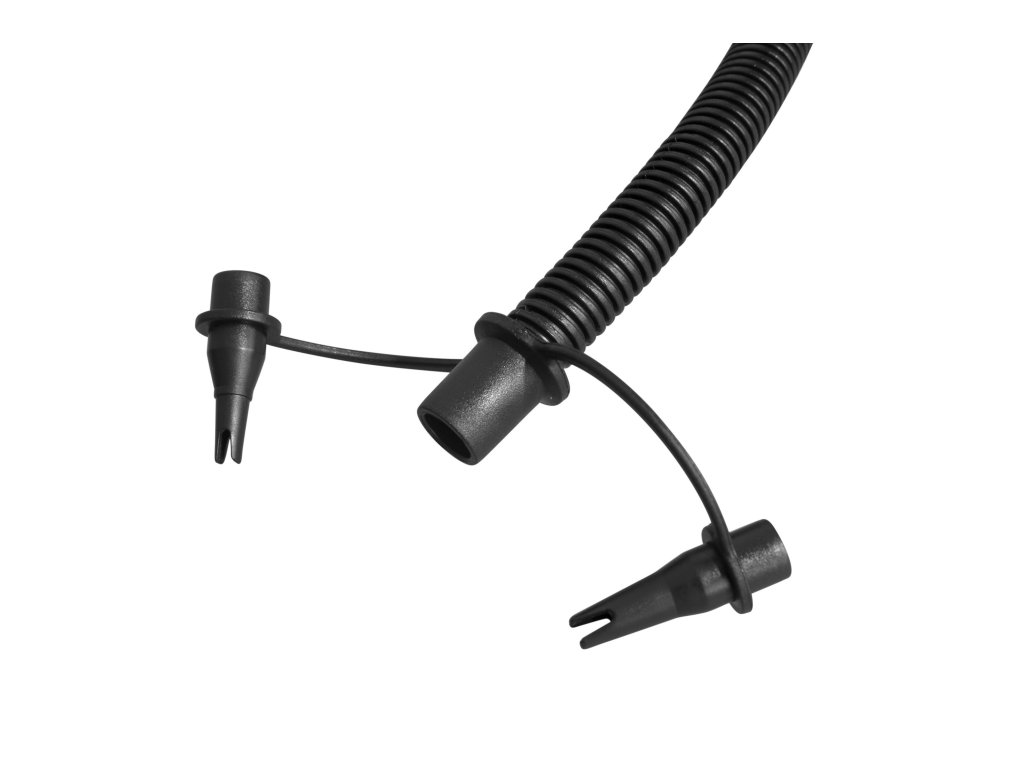 Flexibilná, dlhá hadica výrazne uľahčuje používanie a 3 koncovky umožňujú správne nafúknuť výrobky s rôznymi ventilmi.
