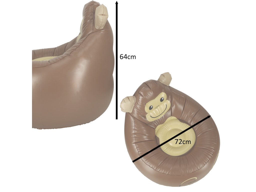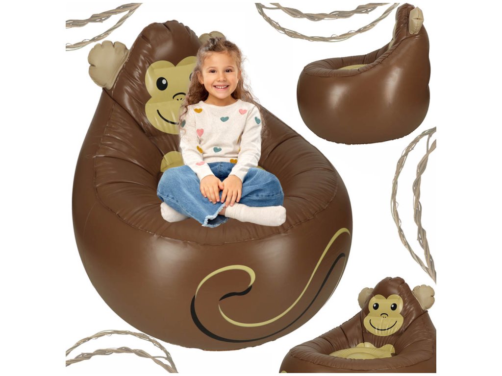 Očarujúce kreslo pre dieťaktoré bude nielen skvelým miestom na odpočinok, ale aj zaujímavým doplnkom detskej izby. Pútavá grafika s opičkou spôsobí, že vaše dieťa bude za stolom sedieť s väčšou chuťou. Kreslo možno používaťdoma aj na dvore - vaše dieťa si zaslúži chvíľku pohodlia kdekoľvek. Po vyprázdnení zaberá kreslo málo miesta, takže ho môžete ľahko uskladniť. Dodáva sa s opravnou záplatou pre prípad drobného poškodenia.