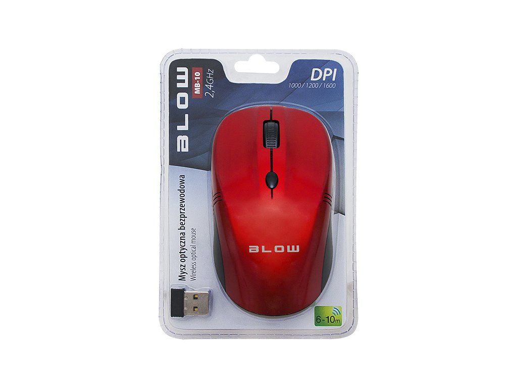 Bezdrôtová myš BLOW MB-10 v červenom prevedení je praktická a pohodlná myš na bežné používanie doma, v kancelárii aj na cestách. Vďaka bezdrôtovému pripojeniu cez 2,4 GHz ponúka voľnosť pohybu bez káblov a stabilné spojenie s počítačom. Mini USB prijímač sa po pripojení automaticky nainštaluje, takže myš je pripravená na používanie v priebehu chvíľky.