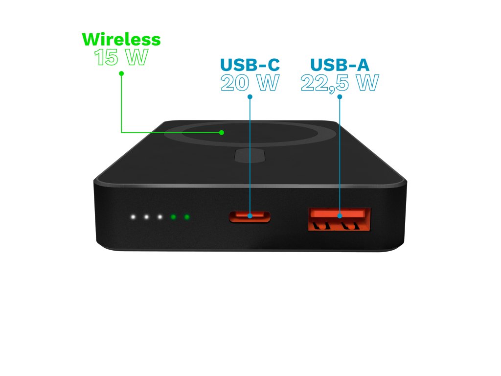 Power banka KM0912 vám tiež ponúka možnosť bezdrôtového nabíjania s maximálnym výkonom 15 W. Týmto spôsobom sa zbavíte káblov a naplno využijete potenciál modernej technológie.