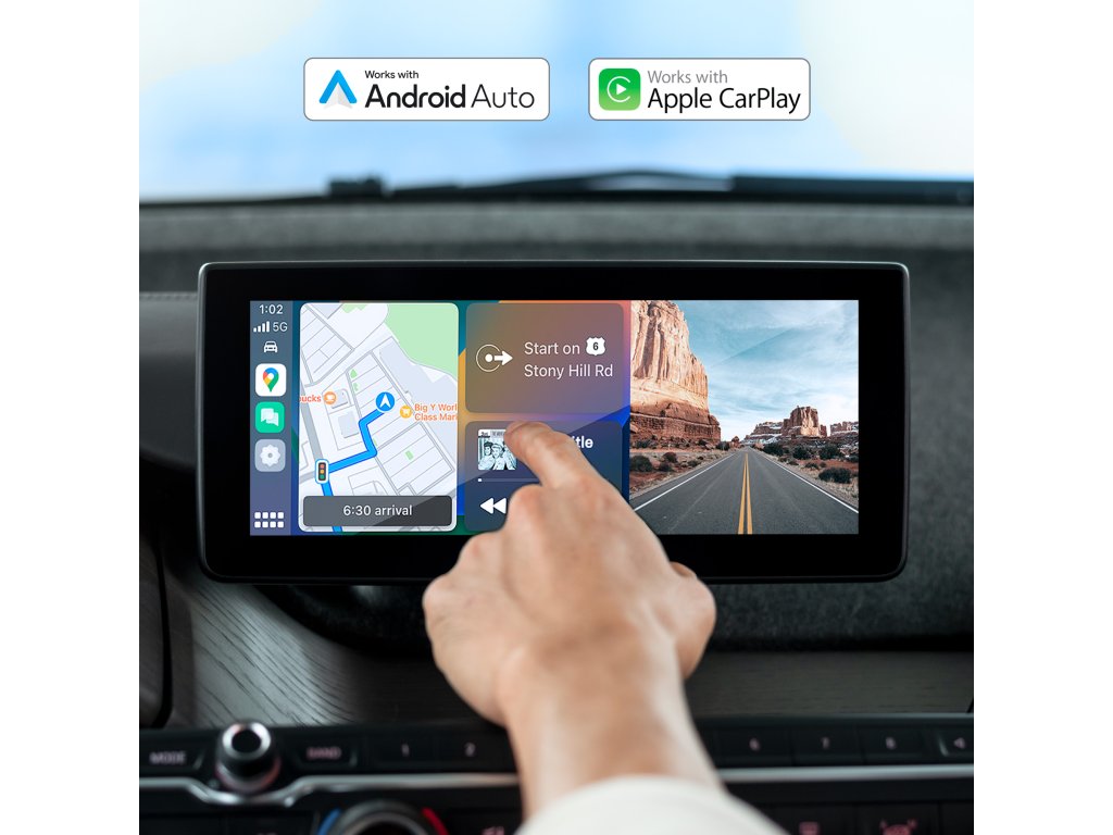 Zariadenie podporuje oba najpopulárnejšie systémy – Android Auto a Apple CarPlay – umožňujúc prístup k navigácii, hudbe, telefonátom či hlasovým asistentom. Všetko pracuje plynulo a bez oneskorenia, aby každá cesta bola pohodlnejšia a bezpečnejšia.