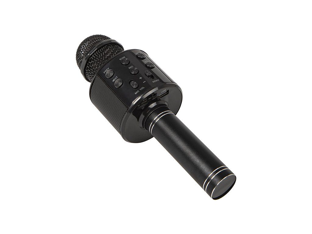 Mikrofón ponúka viac možností prehrávania a ovládania, aby ste si zábavu prispôsobili podľa seba. Vstavané tlačidlá umožňujú rýchlo meniť hlasitosť, prepínať režimy alebo použiť efekt ozveny. Okrem Bluetooth môžete prehrávať hudbu aj z USB zariadenia alebo pamäťovej karty. Nechýba ani FM rádio pre ešte širšie využitie.