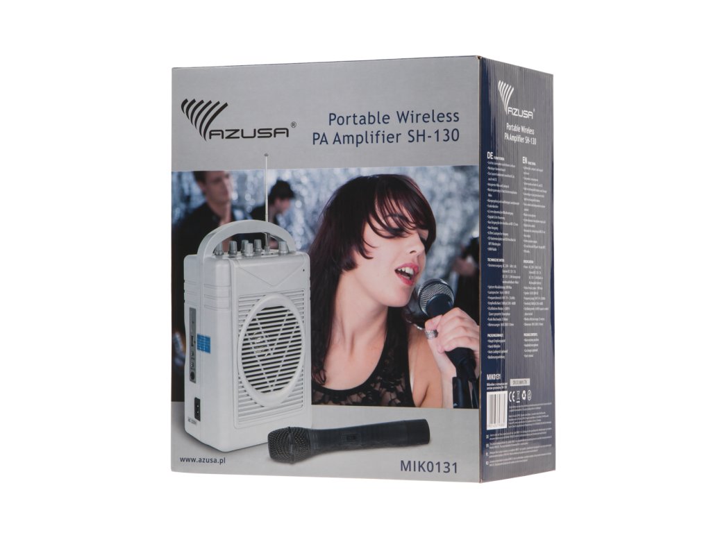 Mikrofón so zosilňovačom AZUSA je prenosná ľahká a kompaktná súprava, ktorá je ideálna na výlety alebo iné organizované výlety. Zariadenie spotrebúva veľmi málo energie a je vybavené senzorom, ktorý zabraňuje úplnému vybitiu batérie. Ďalšou funkciou je ovládanie tónu a nezávislé ovládanie hlasitosti. Pomocou zosilňovača je možné prehrávať aj súbory mp3 z pamäťovej karty SD a USB. Pracovný dosah je 35 m. Výhodou zariadenia je predovšetkým jeho mobilita a hmotnosť, vďaka ktorej je takmer nepostrehnuteľné a veľmi praktické.