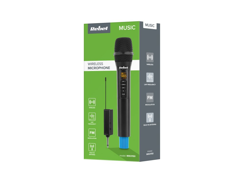 Súčasťou balenia je: prijímač, ručný mikrofón, kábel microUSB, batéria 18650 1200 mAh 3,7 V, používateľská príručka