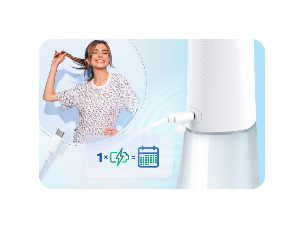 Na jedno plné nabitie kefka funguje minimálne 30 dní, takže je ideálnym riešením na každý deň aj počas cestovania.