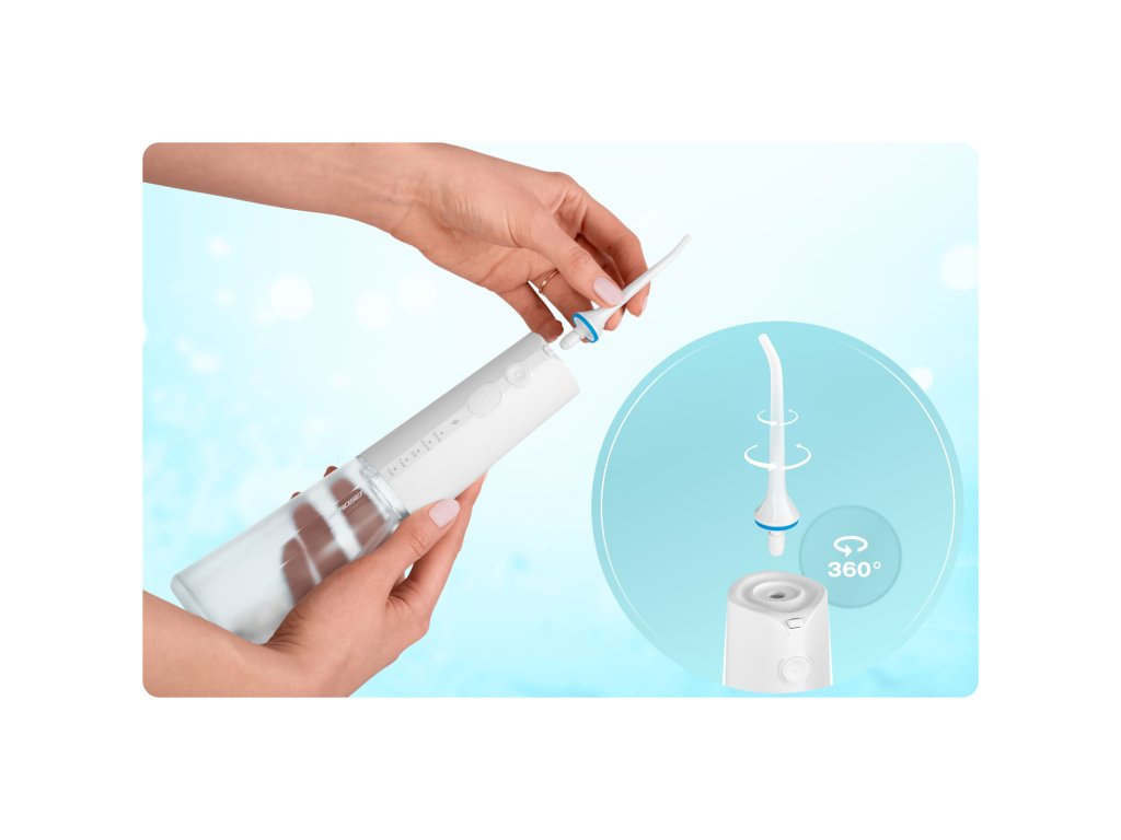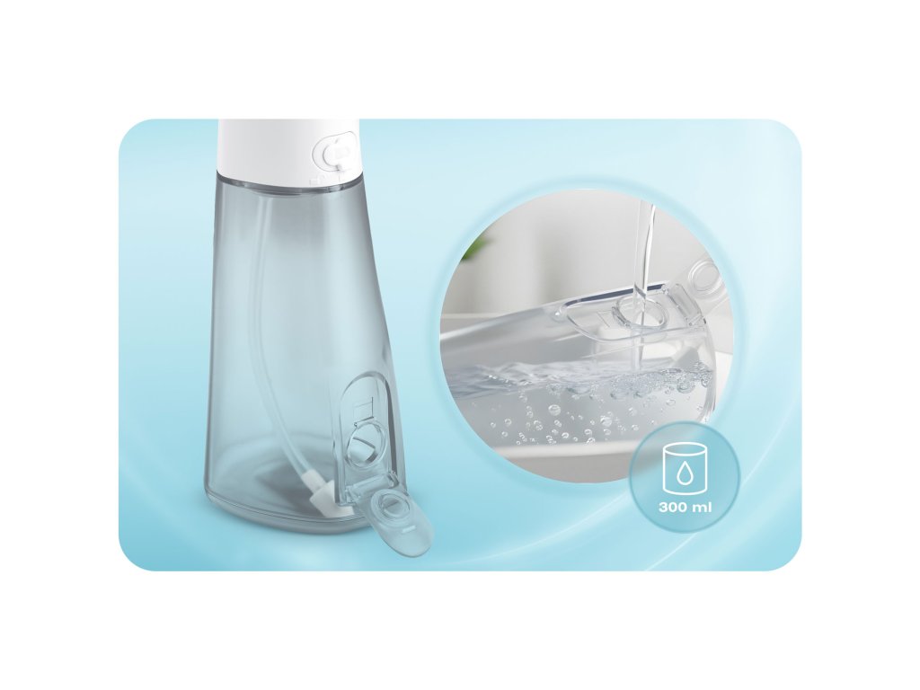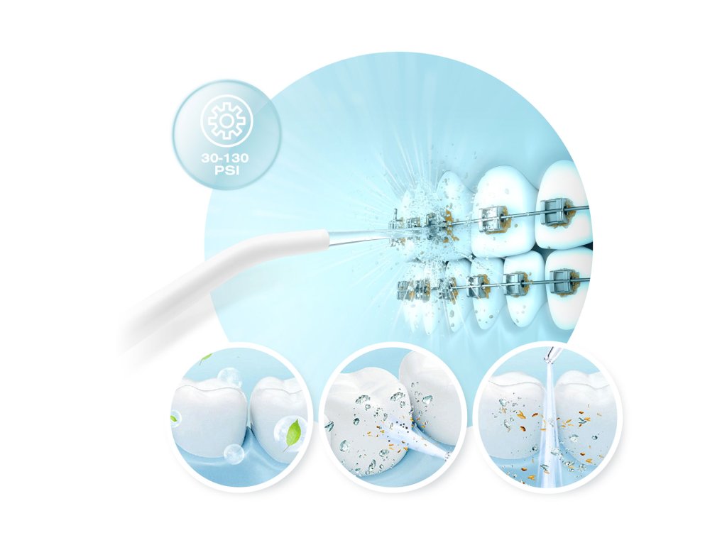 - Dlhšia práca bez prerušení: väčšia nádrž umožňuje dlhší irigujúci čas bez prerušení na doplnenie vody, čo je obzvlášť výhodné pre osoby s ortodontickými prístrojmi alebo mostíkmi.