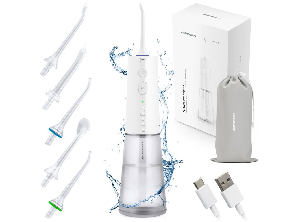 Irigátor Berdsen je kompaktné zariadenie, ktoré si vezmete so sebou na pracovnú cestu alebo dovolenku. Má veľký 300 mililitrový zásobník na vodu, je len málo väčší než elektrická kefka.