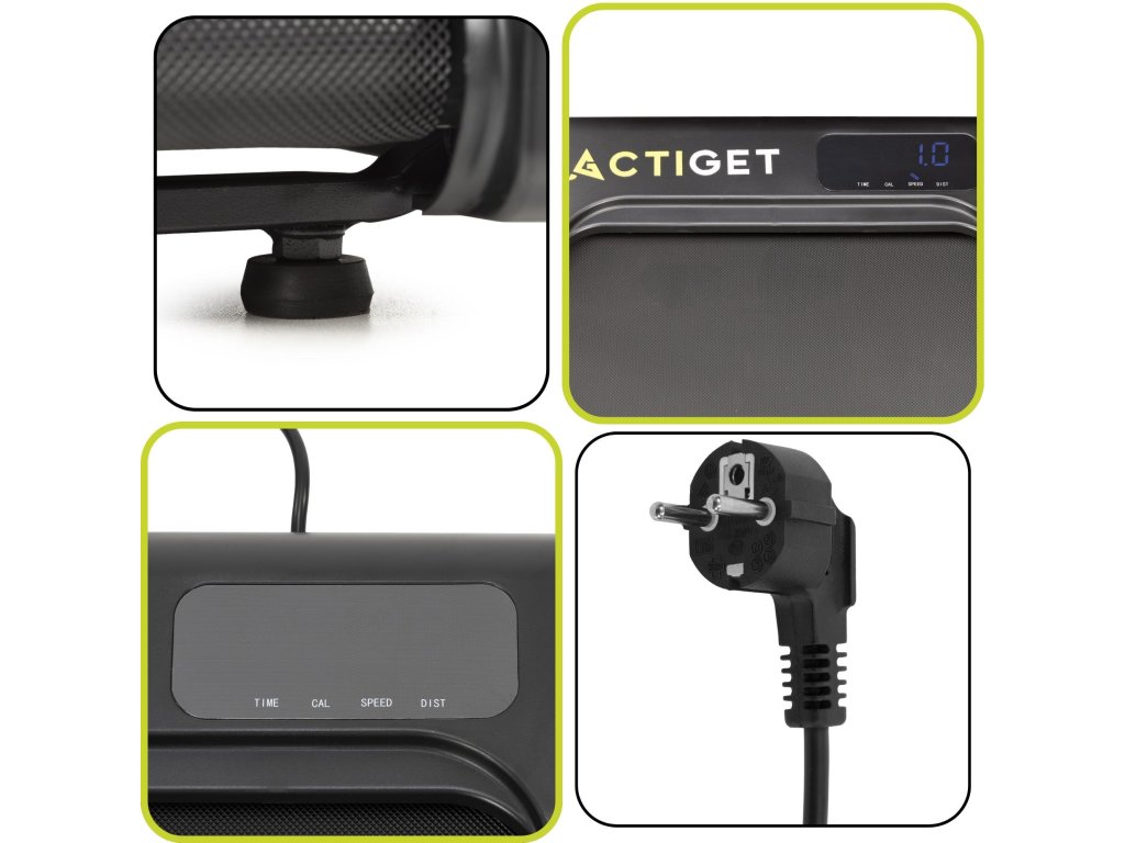 - Bežecký pás má v zadnej časti nastaviteľné (1 cm) protišmykové podložky, ktoré sa dajú zaskrutkovať alebo odskrutkovať pre: nastavenie úrovne zariadenia, zvýšenie stability