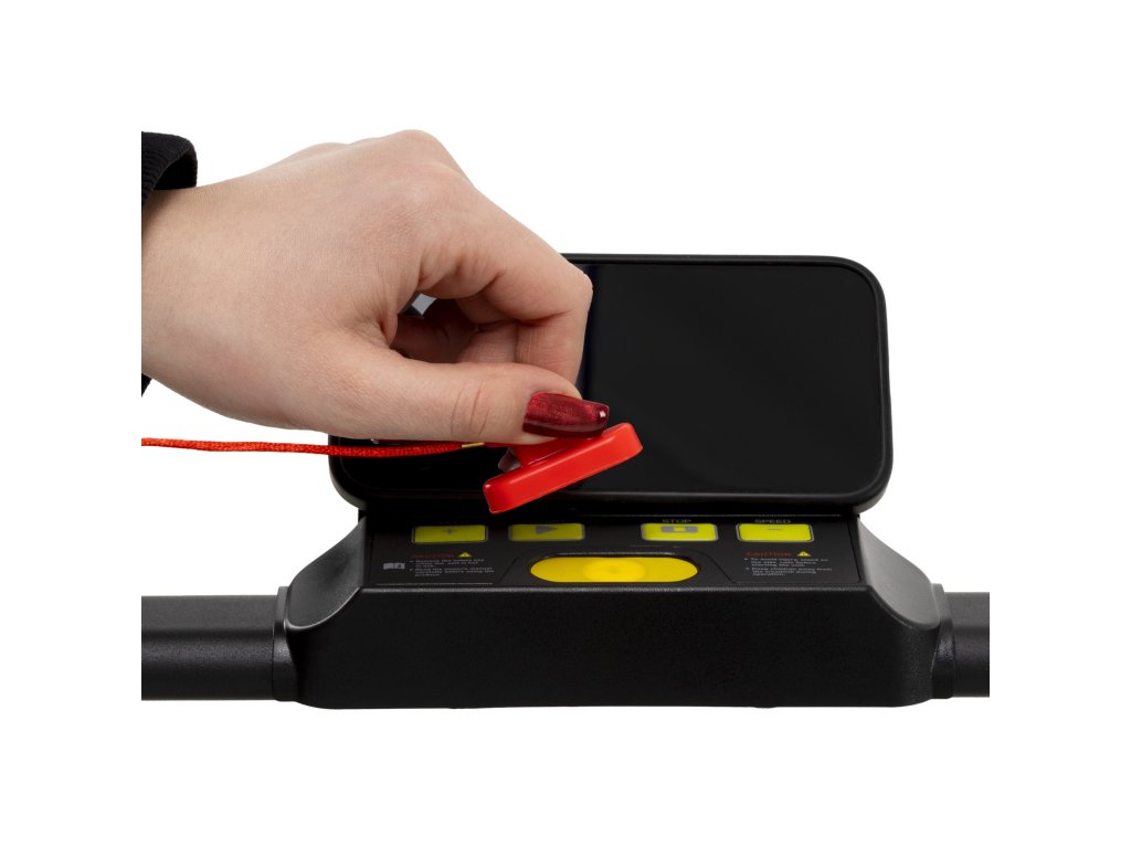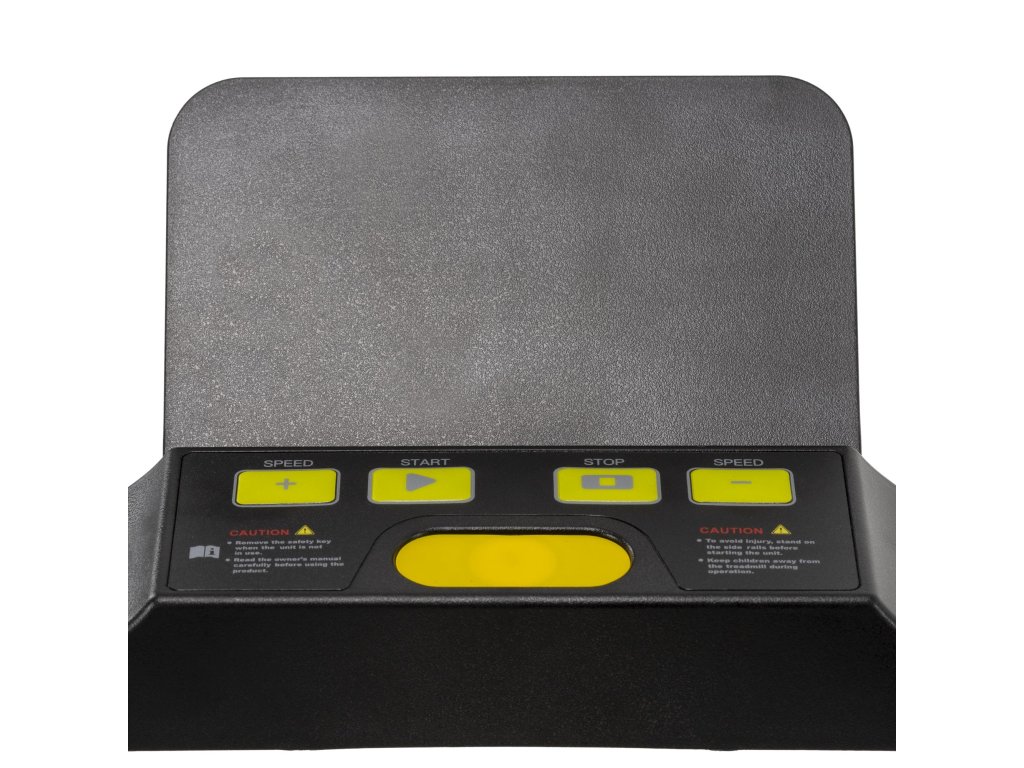 - *Panel s tlačidlami pre rýchly prístup na ráme umožňuje zmenu rýchlosti a spustenie/zastavenie bežeckého pásu bez použitia diaľkového ovládača.