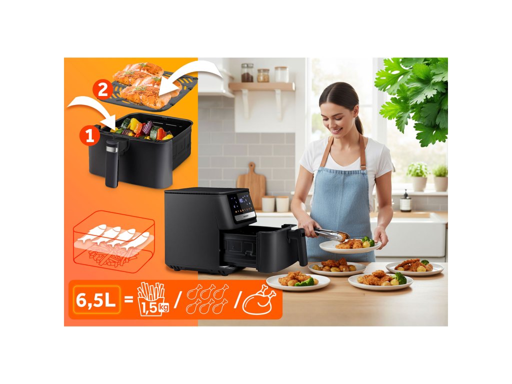 Kapacita 6,5 litra je naozaj veľa. Dosť na to, aby ste pripravili: