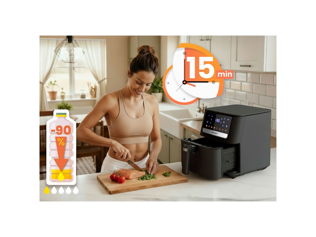 Je to chutná, ľahká alternatíva pre smaženie v hlbokom oleji — bez zápachu, bez striekania a bez zbytočných kalórií.
