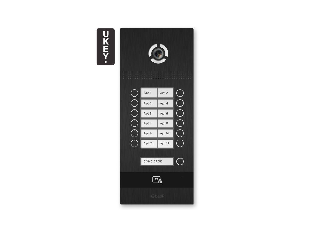 BI-12FB BLACK - Bránový panel IP, 12-nájemnícky, UKEY, SIP 2.0 - BasIP