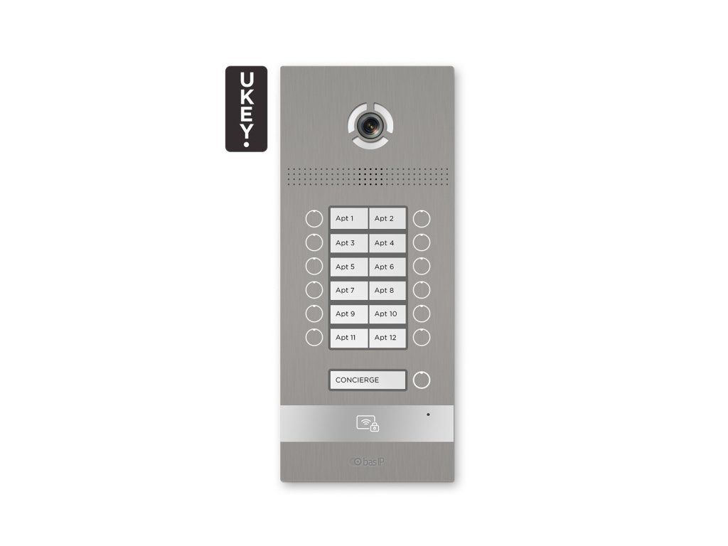 Vonkajší panel BI-12FB Silver značky BasIP je určený pre inštaláciu video vrátnika v IP technológii. Panel má 12 tlačidiel pre účastníkov a 1 tlačidlo typu "Concierge". BI-12FB sa vyznačuje moderným dizajnom a širokou funkčnosťou; je vybavený prístupovým čítačkou podľa noriem Mifare a Unique a je plne integrovaný so systémom otvárania UKEY (QR-kód, NFC a Bluetooth BLE). Zariadenie umožňuje plnú integráciu s akýmkoľvek bezpečnostným a automatizačným systémom prostredníctvom otvoreného API rozhrania.