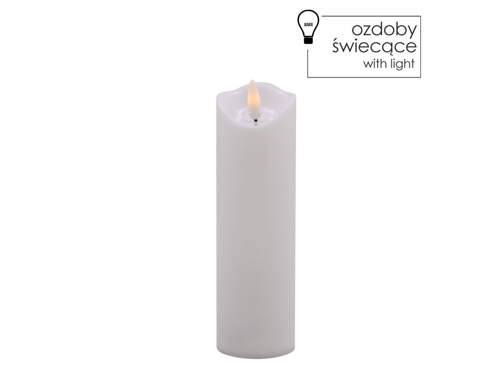 Plastová LED sviečka s mihotajúcim plameňom v teplej bielej.Môže byť použitá ako vložka do lampáša, ale aj ako ozdoba interiéru domu.
