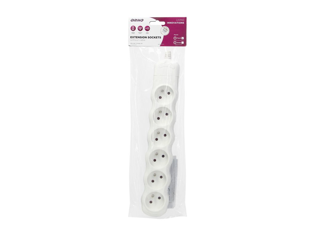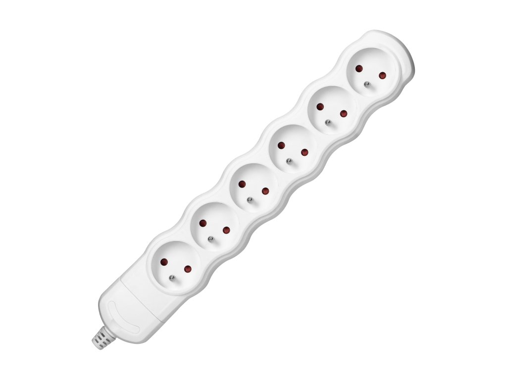 Biely 6-zásuvkový rozdeľovač s uzemnením