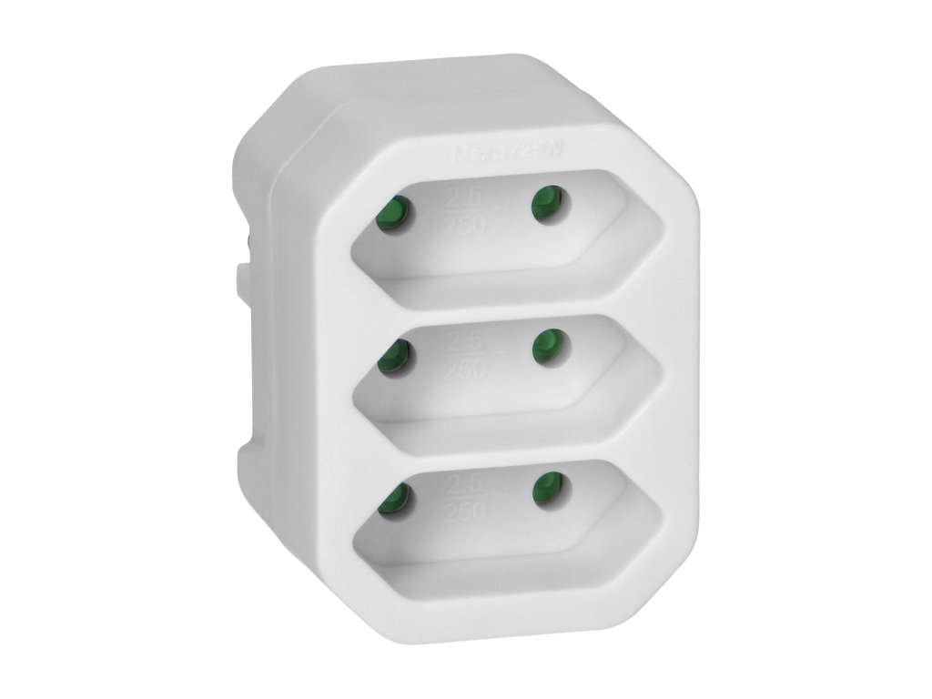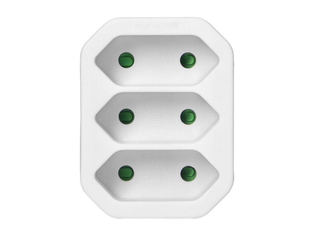 Biely elektrický rozdeľovač 3x2P, 20ks balenie