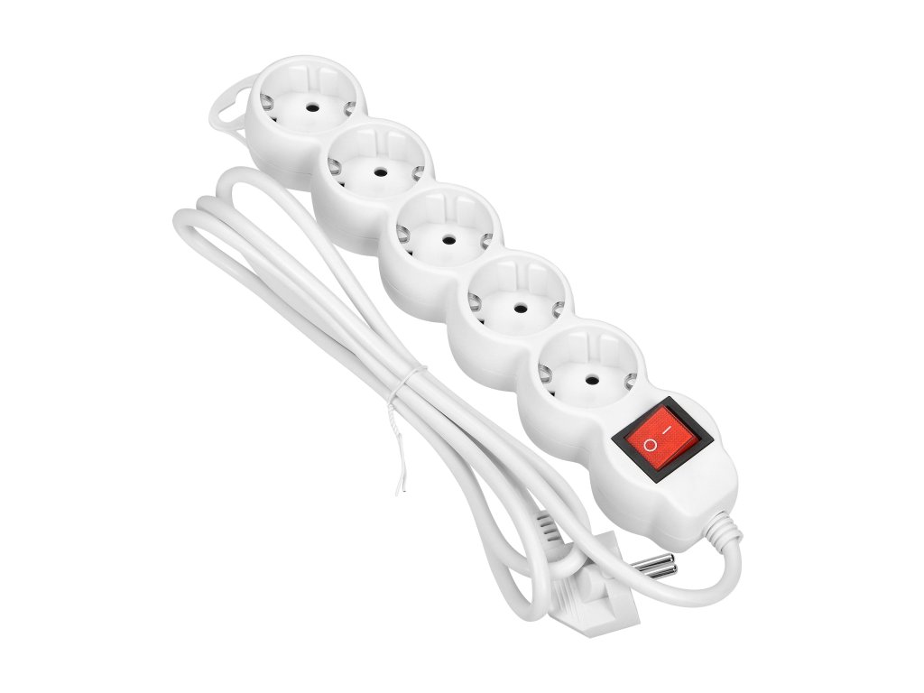 - Prepäťová ochrana: Tento biely prepäťový chránič chráni vaše elektronické zariadenia pred neočakávanými výkyvmi napätia a prepätiami, ktoré môžu spôsobiť ich poškodenie alebo výpadok.
